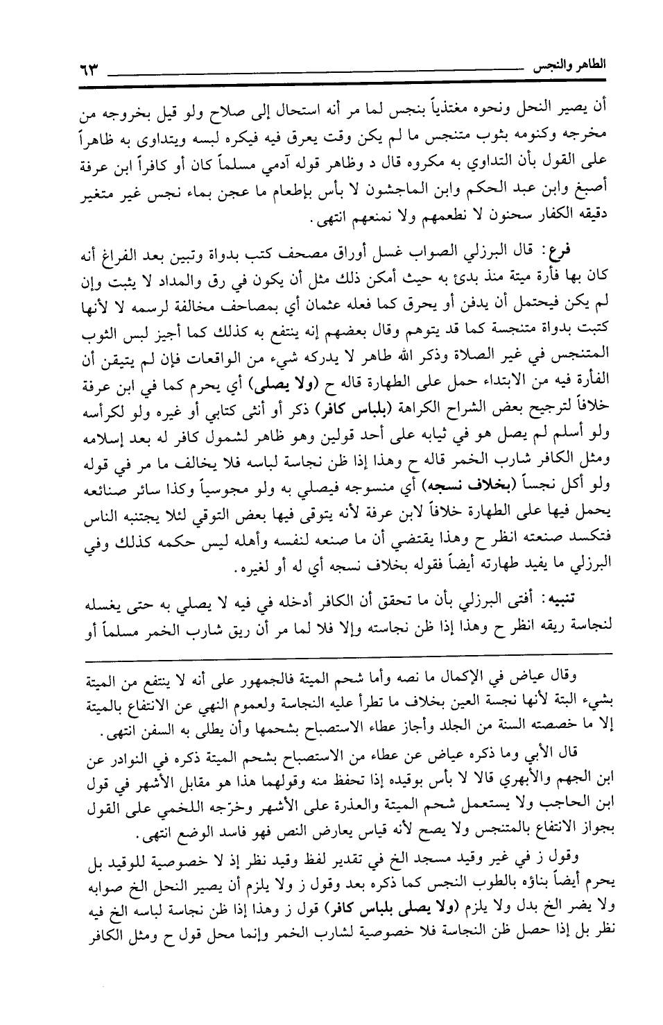 تنبيه: أفتى البرزلي بأن ما تحقق أن الكافر أدخله في فيه لا يصلي به حتى يغسله لنجاسة ريقه انظر ح وهذا إذا ظن نجاسته وإلا فلا لما مر أن ريق شارب الخمر مسلمًا أو
