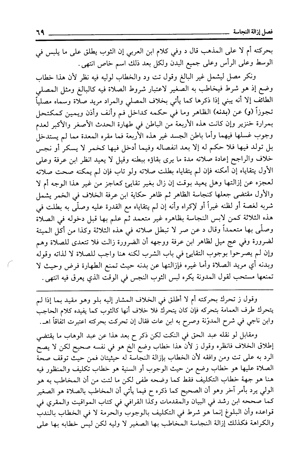 ومقابل لو نقله عبد الحق في النكت لكن ذكر ح بعد هذا عن عبد الوهاب ما يقتضي إطلاق الخلاف فانظره وقول ز لأن هذا خطاب وضع الخ هو في نفسه صحح لكن لا يصح الرد به على تت ومن وافقه لأن الخطاب بإزالة النجاسة له حيثيتان فمن حيث توقف صحة الصلاة عليها هو خطاب وضع من حيث الوجوب أو السنية هو خطاب تكليف والمنظور فيه هنا هو جهة خطاب التكليف فقط كما وضحه طفى لكن ما لتت من أن المخاطب به هو الولي يرد بأمر آخر وهو أن الصحيح كما ذكره ح فيما يأتي أن المخاطب بالصلاة هو الصغير كما صححه ابن رشد في البيان والمقدمات وكذا القرافي في كتاب المواقيت والمقري في قواعده وأن البلوغ إنما هو شرط في التكليف بالوجوب والحرمة لا في الخطاب بالندب والكراهة فكذلك إزالة النجاسة المخاطب بها الصغير لا وليه لكن ليس خطابه بها على