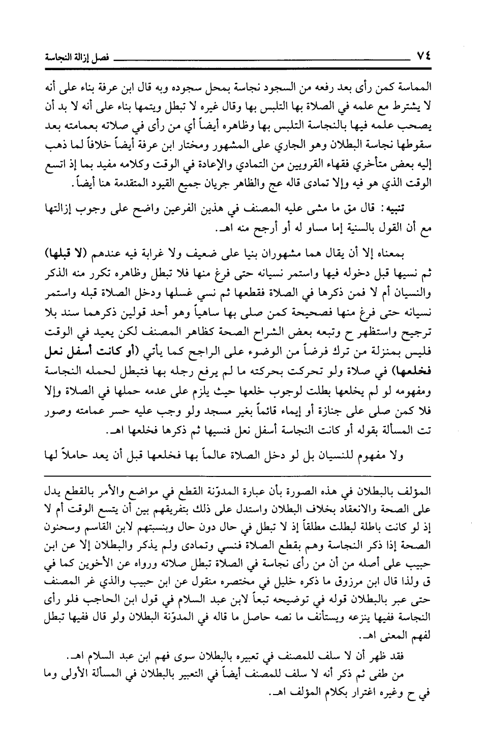 من طفى ثم ذكر أنه لا سلف للمصنف أيضًا في التعبير بالبطلان في المسألة الأولى وما في ح وغيره اغترار بكلام المؤلف اهـ.