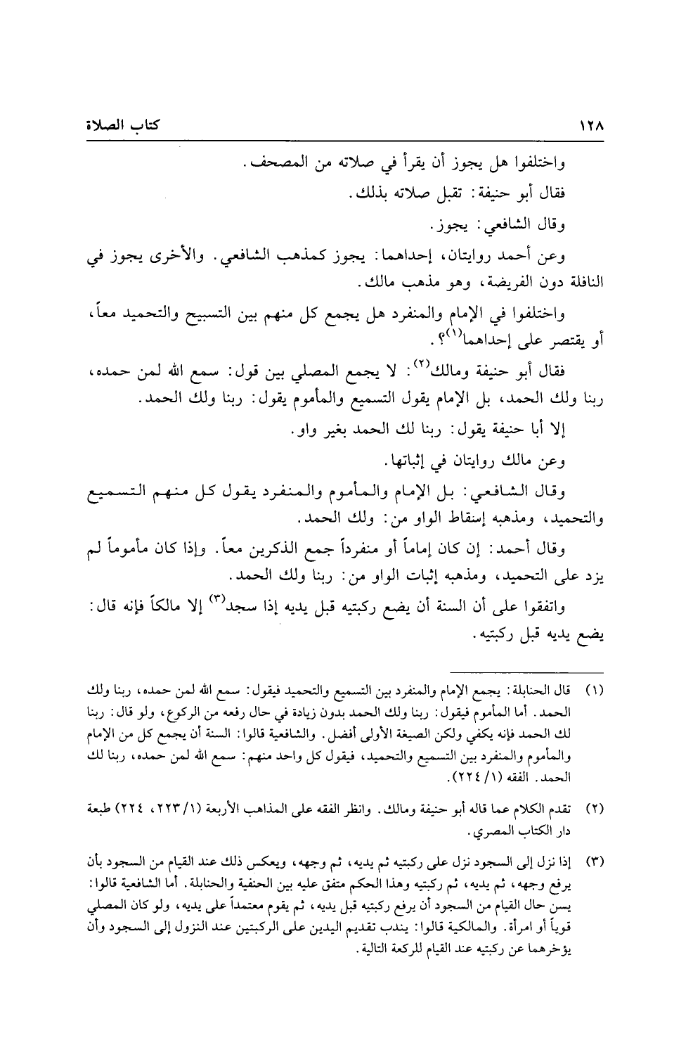 وَاخْتلفُوا هَل يجوز أَن يقْرَأ فِي صلَاته من الْمُصحف.
