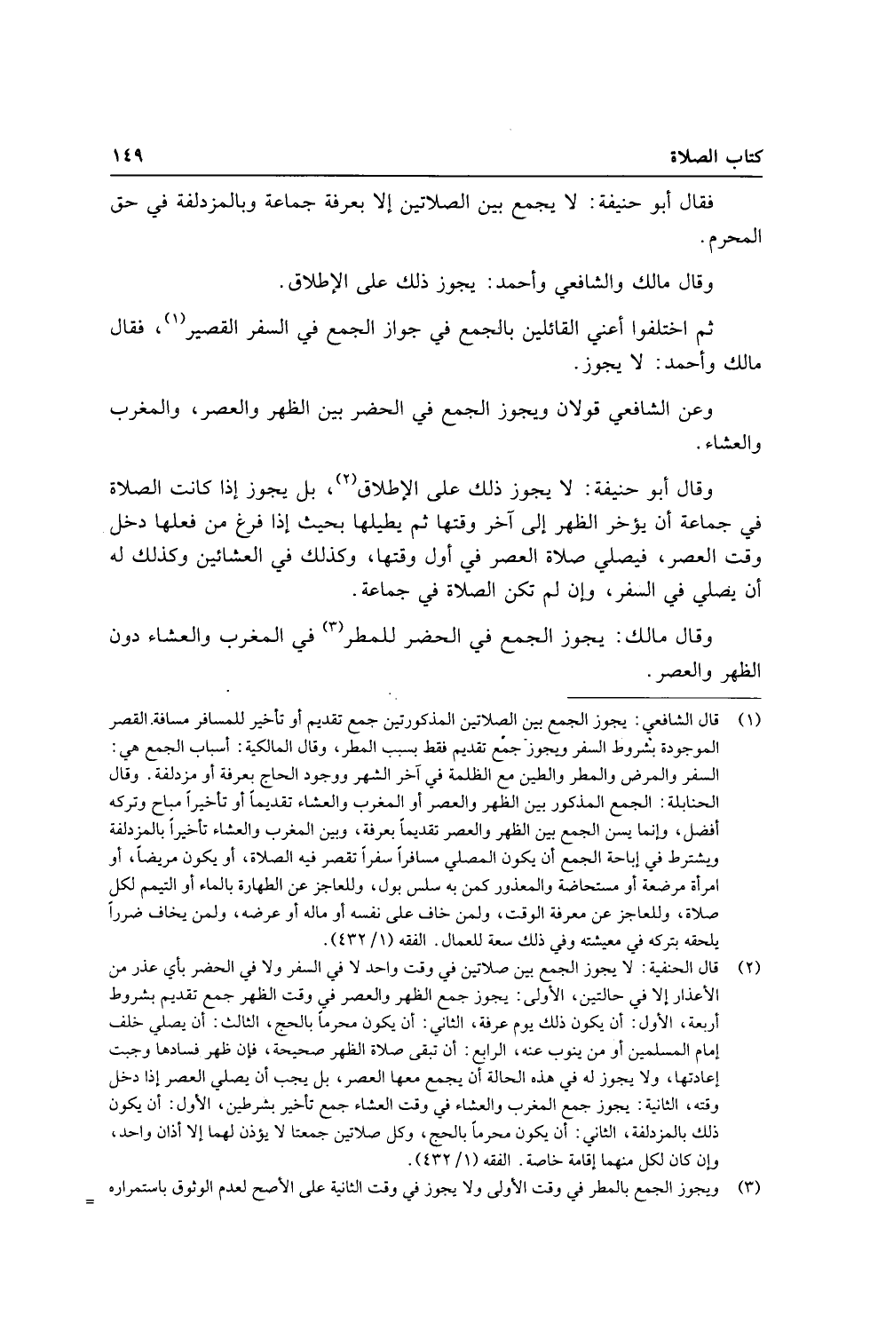 فَقَالَ أَبُو حنيفَة: لَا يجمع بَين الصَّلَاتَيْنِ إِلَّا بِمَعْرِِفَة جمَاعَة وبالمزدلفة فِي حق الْمحرم.