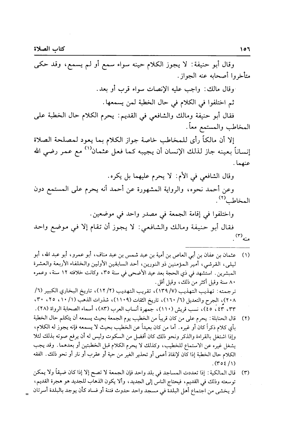 فَقَالَ أَبُو حنيفَة وَمَالك وَالشَّافِعِيّ فِي الْقَدِيم: يحرم الْكَلَام حَال الْخطْبَة على الْمُخَاطب والمستمع مَعًا.