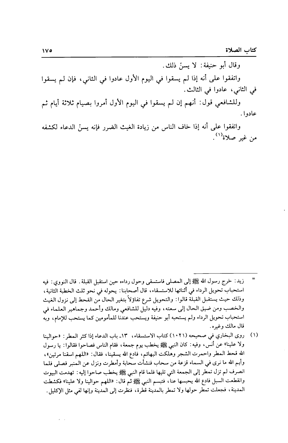 وَاتَّفَقُوا على أَنه إِذا خَافَ النَّاس من زِيَادَة الْغَيْث الضَّرَر فَإِنَّهُ يسن الدُّعَاء لكشفه من غير صَلَاة.