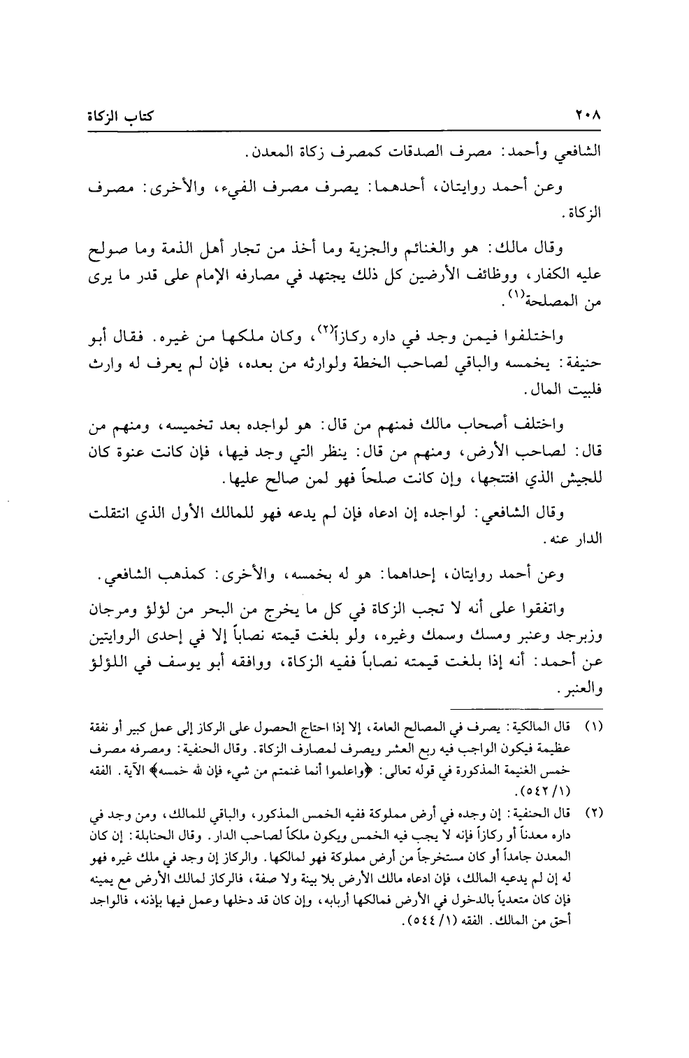 الشَّافِعِي وَأحمد: مصرف الصَّدقَات كمصرف زَكَاة الْمَعْدن.