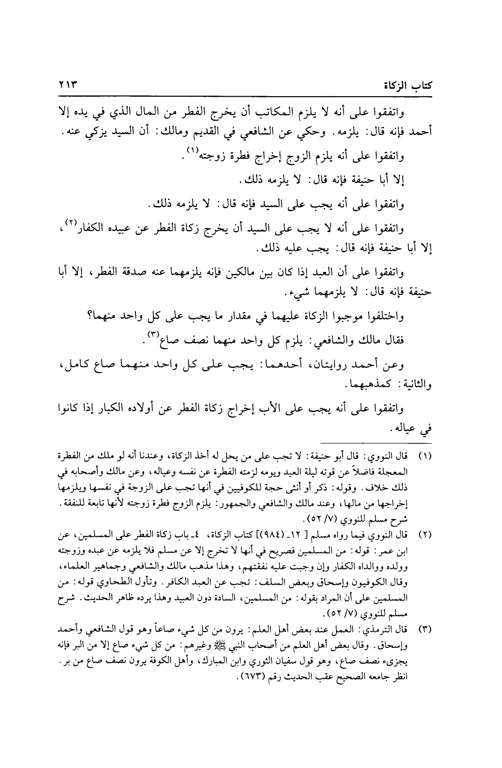 وَاتَّفَقُوا على أَنه لَا يجب على السَّيِّد أَن يخرج زَكَاة الْفطر عَن عبيده الْكفَّار، إِلَّا أَبَا حنيفَة فَإِنَّهُ قَالَ: يجب عَلَيْهِ ذَلِك.