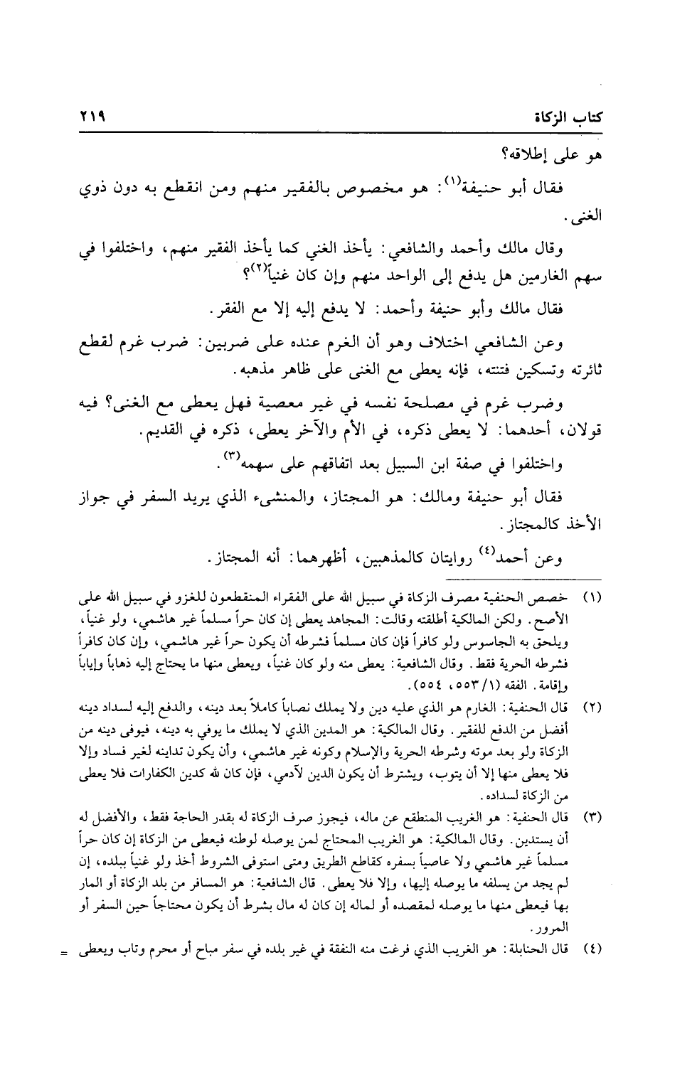 وَقَالَ مَالك وَأحمد وَالشَّافِعِيّ: يَأْخُذ الْغَنِيّ كَمَا يَأْخُذ الْفَقِير مِنْهُم، وَاخْتلفُوا فِي سهم الغارمين هَل يدْفع إِلَى الْوَاحِد مِنْهُم وَإِن كَانَ غَنِيا؟