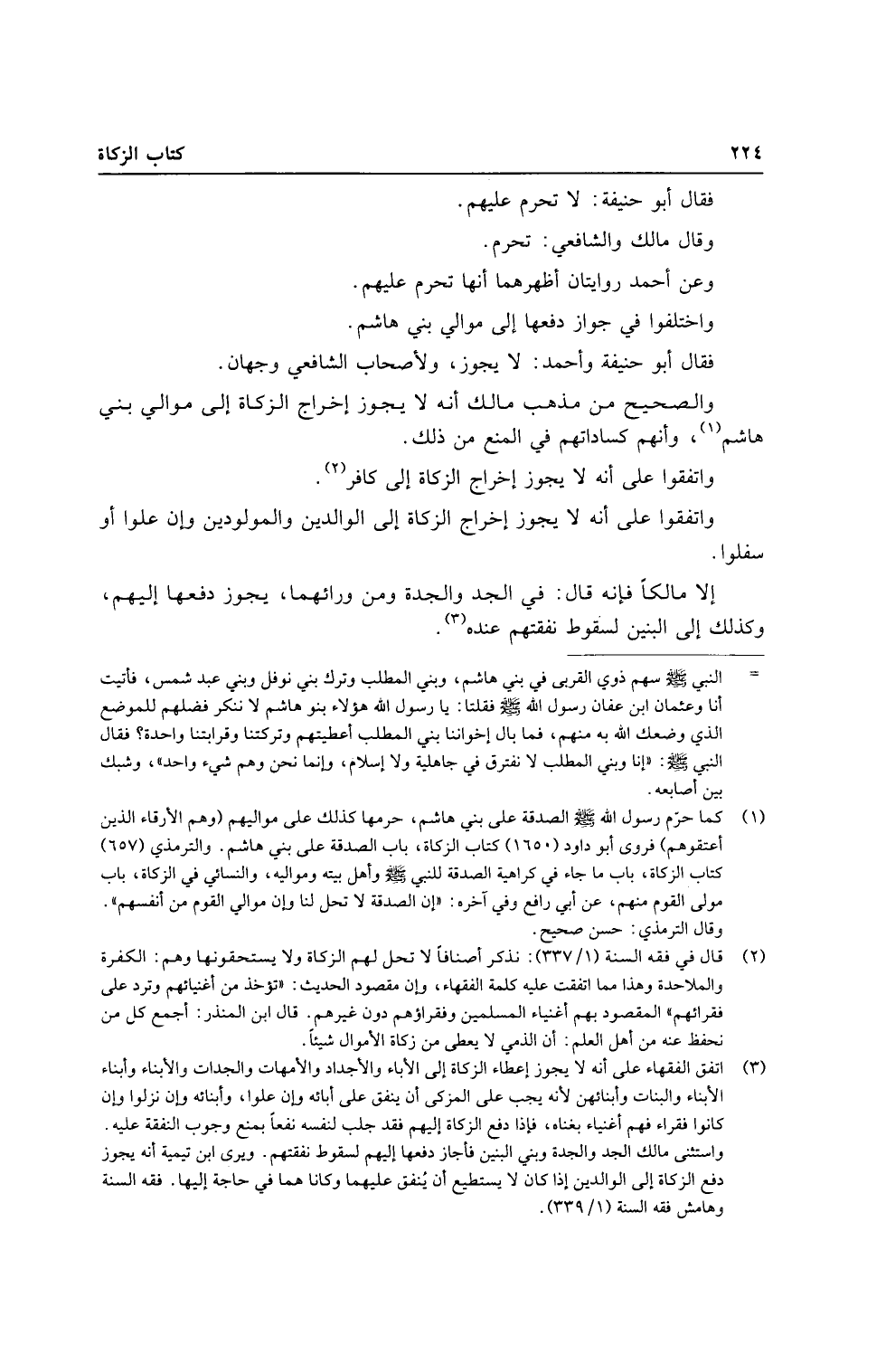 وَاتَّفَقُوا على أَنه لَا يجوز إِخْرَاج الزَّكَاة إِلَى الْوَالِدين والمولودين وَإِن علوا أَو سفلوا.