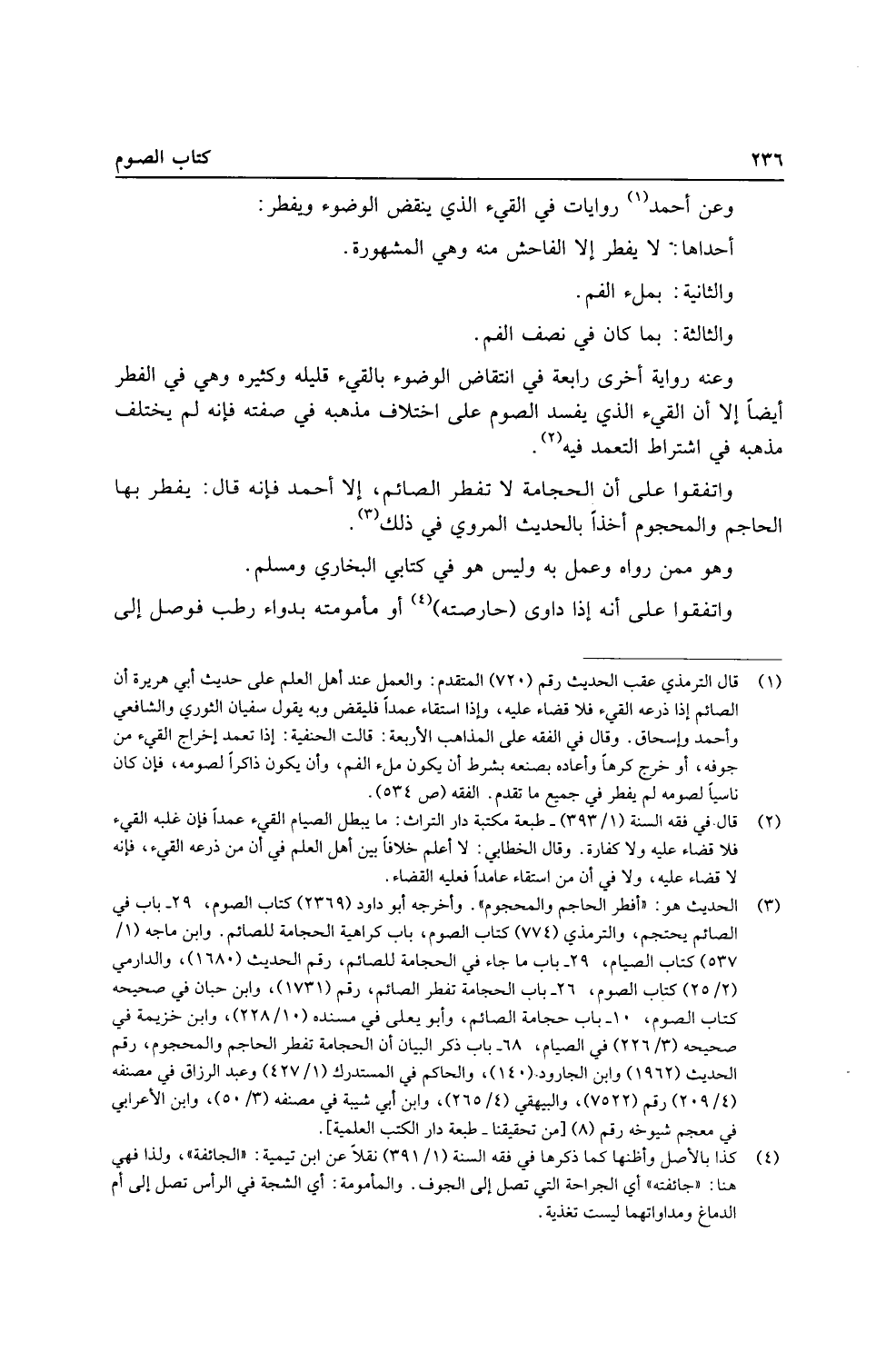 وَعَن أَحْمد رِوَايَات فِي الْقَيْء الَّذِي ينْقض الْوضُوء وَيفْطر: