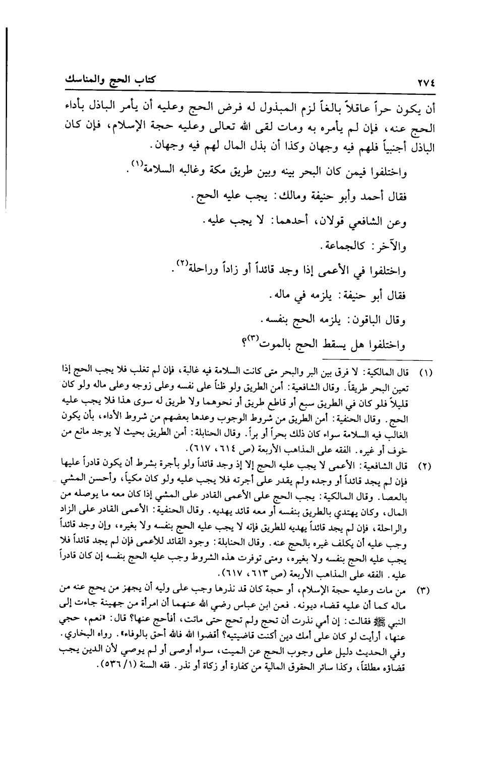 وَاخْتلفُوا فِيمَن كَانَ الْبَحْر بَينه وَبَين طَرِيق مَكَّة وغالبه السَّلامَة.