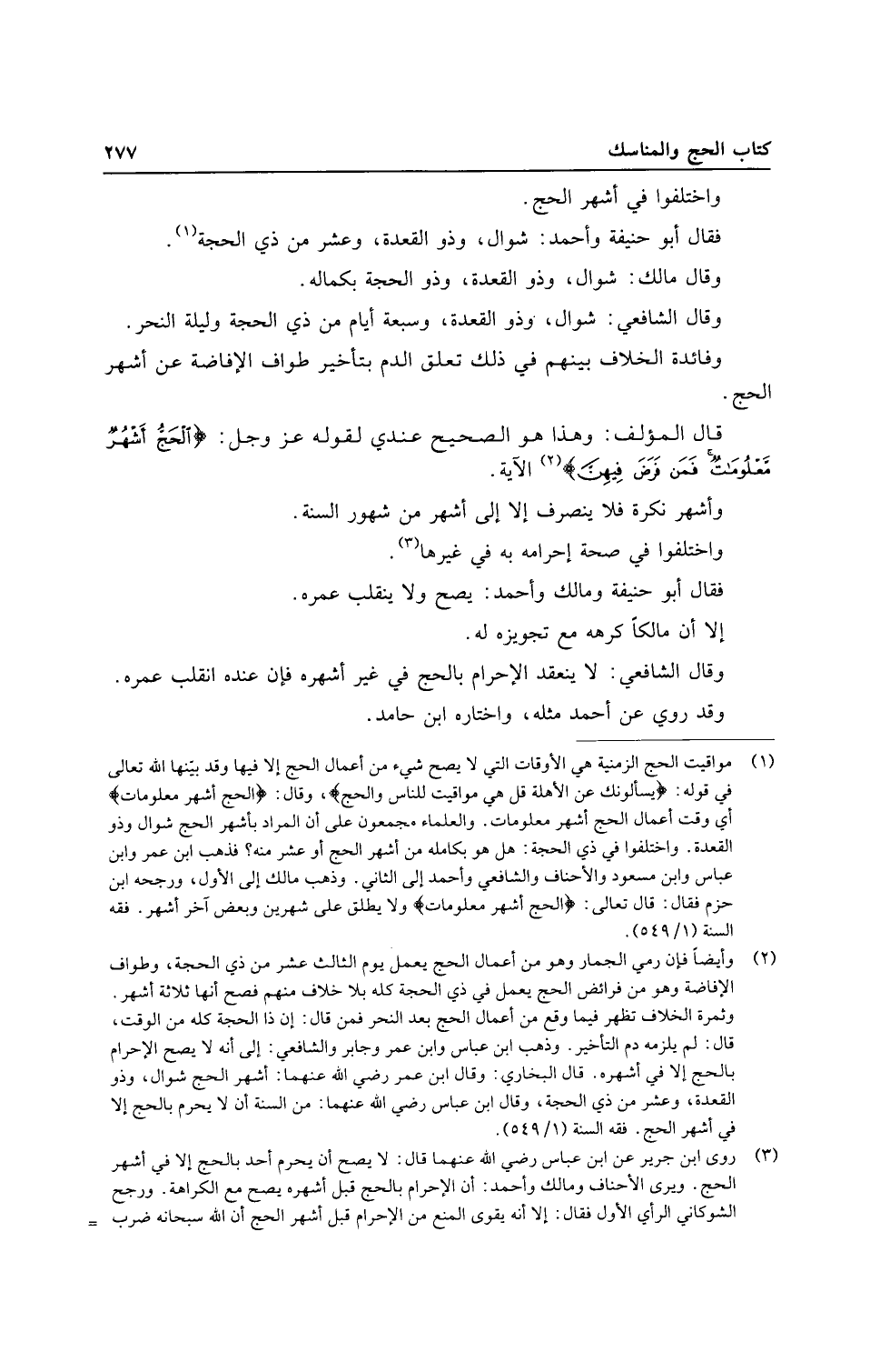 قَالَ الْمُؤلف: وَهَذَا هُوَ الصَّحِيح عِنْدِي لقَوْله عز وَجل: {الْحَج أشهر مَعْلُومَات فَمن فرض فِيهِنَّ} الْآيَة.