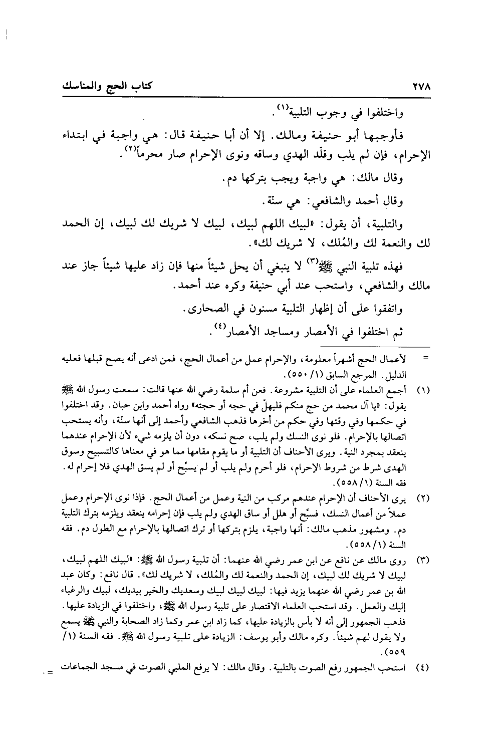 فَهَذِهِ تَلْبِيَة النَّبِي - صَلَّى اللَّهُ عَلَيْهِ وَسَلَّم َ - لَا يَنْبَغِي أَن يحل شَيْئا مِنْهَا فَإِن زَاد عَلَيْهَا شَيْئا جَازَ عِنْد مَالك وَالشَّافِعِيّ، وَاسْتحبَّ عِنْد أبي حنيفَة وَكره عِنْد أَحْمد.