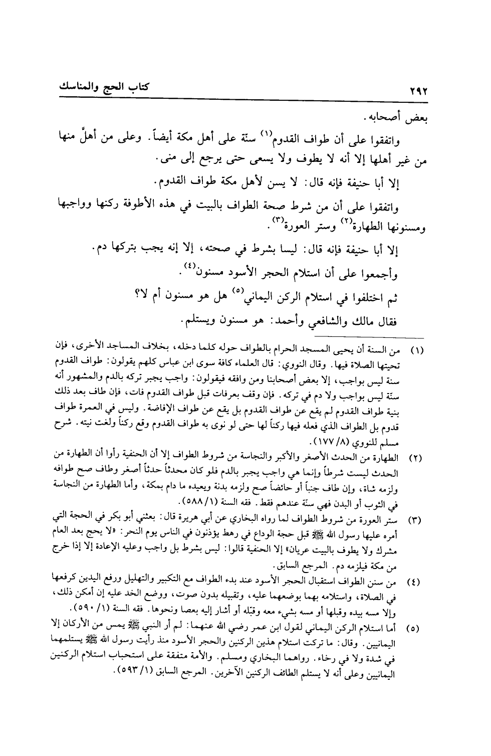 وَاتَّفَقُوا على أَن طواف الْقدوم سنة على أهل مَكَّة أَيْضا. وعَلى من أهل مِنْهَا من غير أَهلهَا إِلَّا أَنه لَا يطوف وَلَا يسْعَى حَتَّى يرجع إِلَى منى.