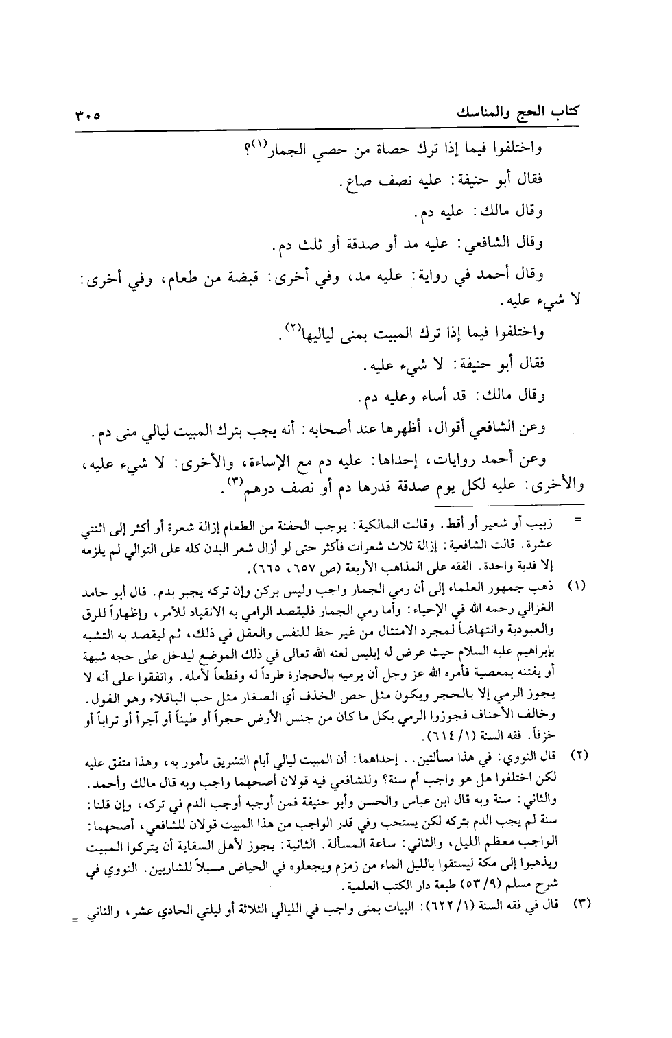 وَعَن الشَّافِعِي أَقْوَال، أظهرها عِنْد أَصْحَابه: أَنه يجب بترك الْمبيت ليَالِي منى دم.