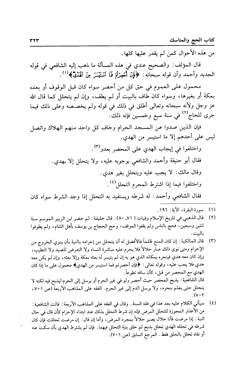 قَالَ الْمُؤلف: وَالصَّحِيح عِنْدِي فِي هَذِه الْمَسْأَلَة مَا ذهب إِلَيْهِ الشَّافِعِي فِي قَوْله الْجَدِيد وَأحمد وَأَن قَوْله سُبْحَانَهُ: {فَإِن أحصرتم فَمَا اسْتَيْسَرَ من الْهدى} .