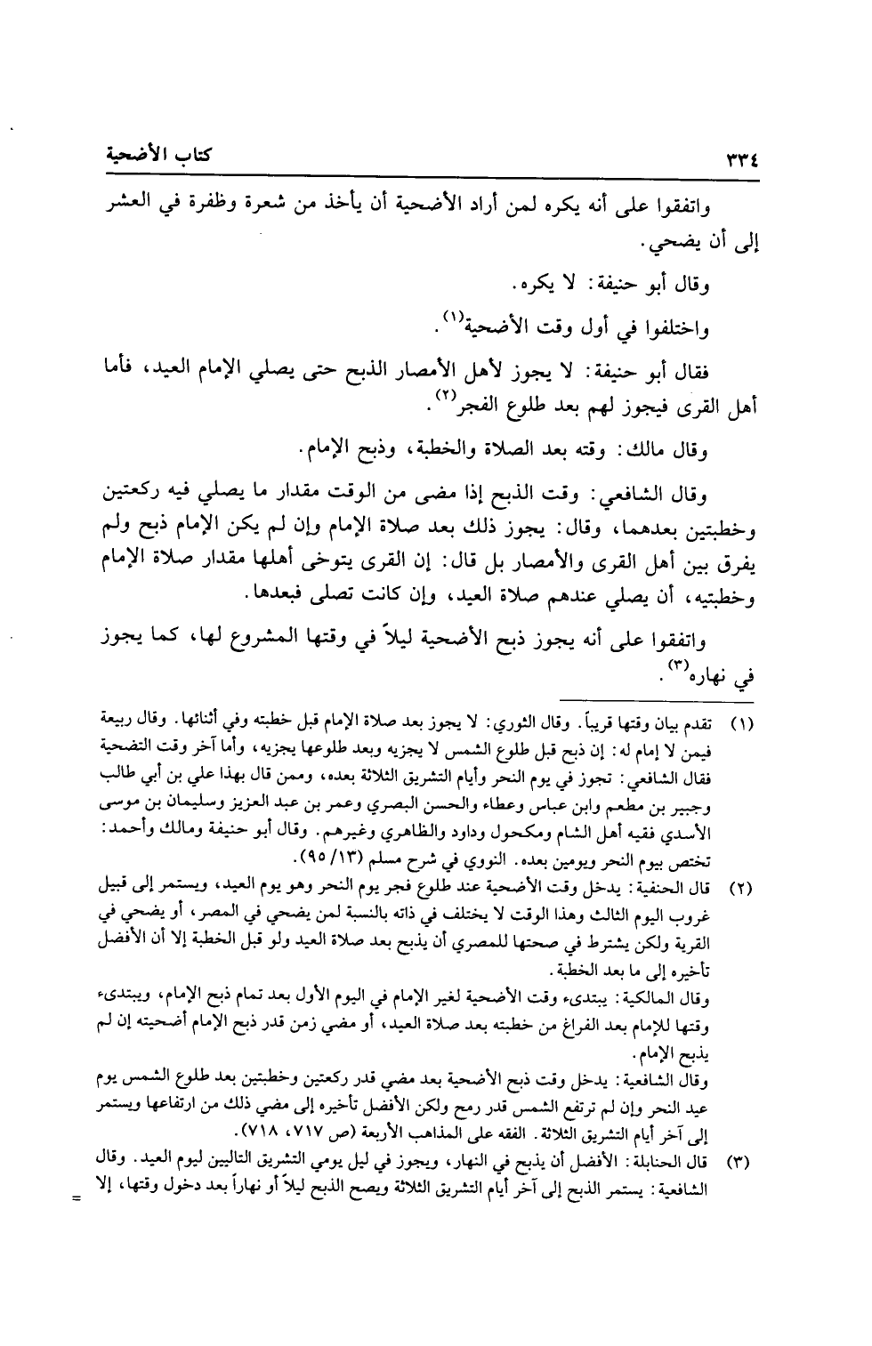 وَقَالَ الشَّافِعِي: وَقت الذّبْح إِذا مضى من الْوَقْت مِقْدَار مَا يُصَلِّي فِيهِ رَكْعَتَيْنِ وخطبتين بعدهمَا، وَقَالَ: يجوز ذَلِك بعد صَلَاة الإِمَام وَإِن لم يكن الإِمَام ذبح وَلم يفرق بَين أهل الْقرى والأمصار بل قَالَ: إِن الْقرى يتوخى أَهلهَا مِقْدَار صَلَاة الإِمَام وخطبتيه، أَن يُصَلِّي عِنْدهم صَلَاة الْعِيد، وَإِن كَانَت تصلى فبعدها.