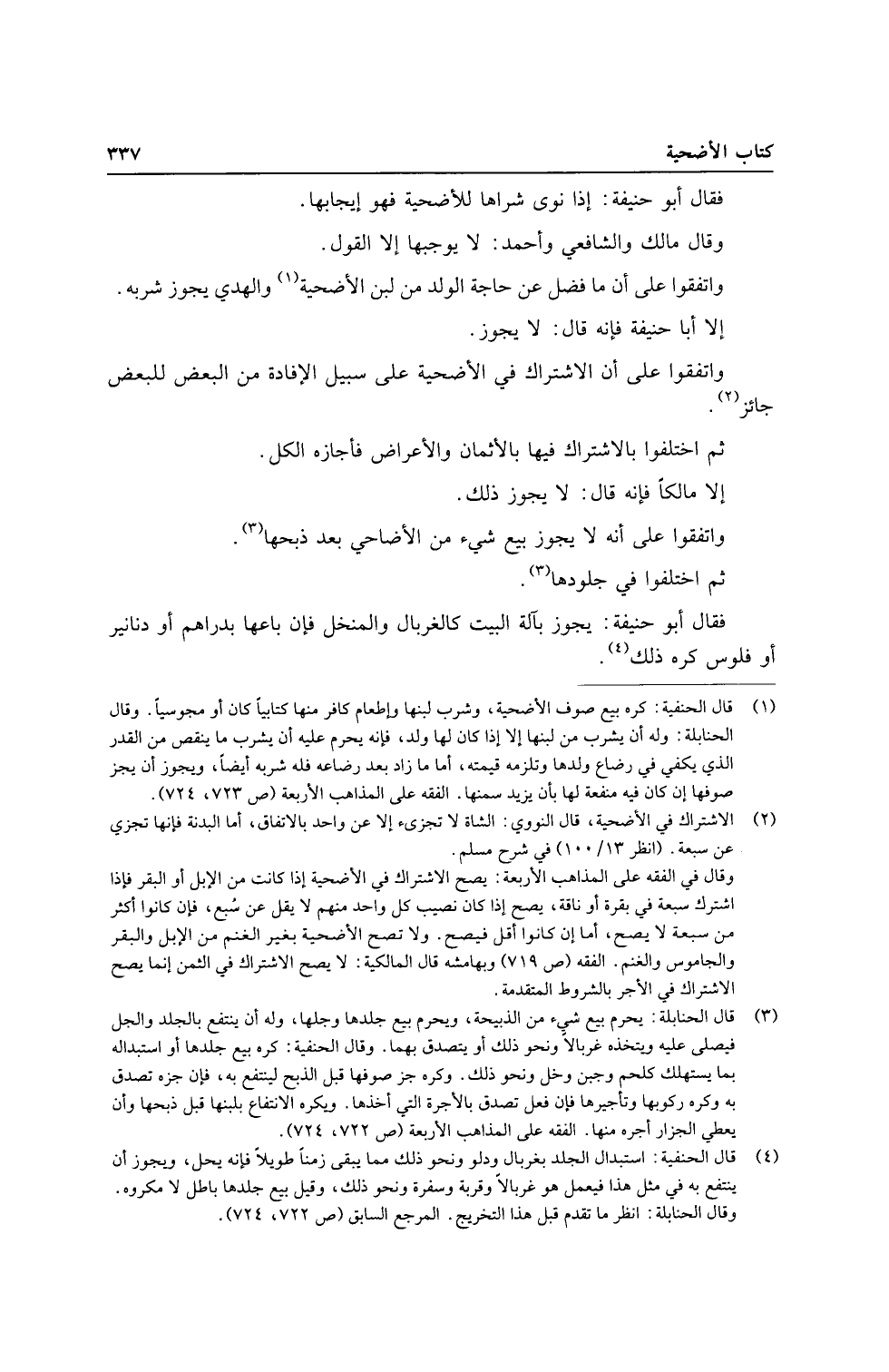 وَاتَّفَقُوا على أَن الِاشْتِرَاك فِي الْأُضْحِية على سَبِيل الإفادة من الْبَعْض للْبَعْض جَائِز.