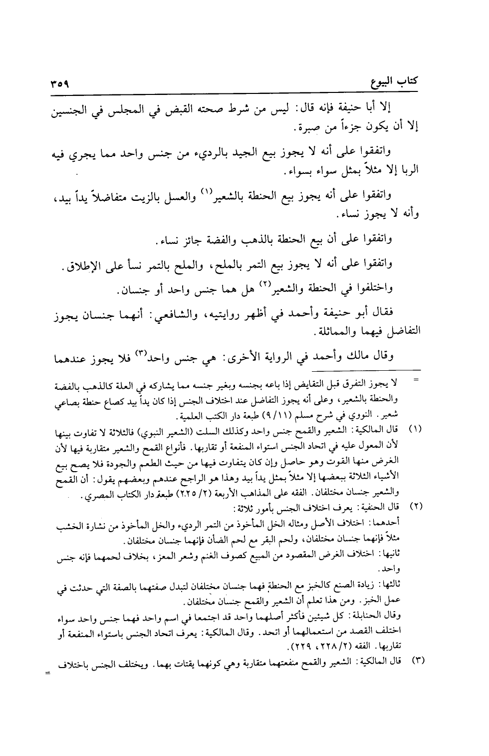 وَاخْتلفُوا فِي الْحِنْطَة وَالشعِير هَل هما جنس وَاحِد أَو جِنْسَانِ.