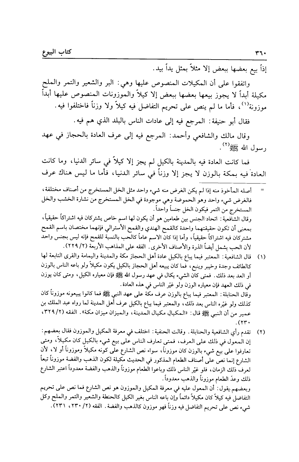 فَمَا كَانَت الْعَادة فِيهِ بِالْمَدِينَةِ بِالْكَيْلِ لم يجز إِلَّا كَيْلا فِي سَائِر الدُّنْيَا، وَمَا كَانَت الْعَادة فِيهِ بِمَكَّة بِالْوَزْنِ لَا يجز إِلَّا وزنا فِي سَائِر الدُّنْيَا، فَأَما مَا لَيْسَ هُنَاكَ عرف