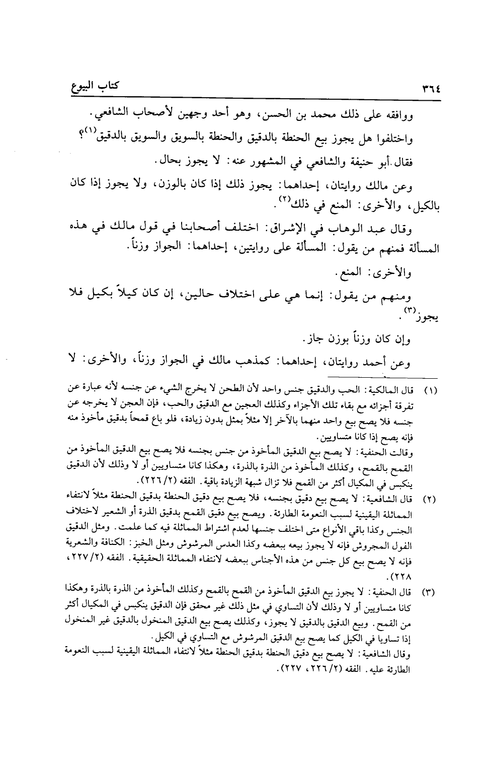 وَقَالَ عبد الْوَهَّاب فِي الْإِشْرَاق: اخْتلف أَصْحَابنَا فِي قَول مَالك فِي هَذِه الْمَسْأَلَة فَمنهمْ من يَقُول: الْمَسْأَلَة على رِوَايَتَيْنِ، إِحْدَاهمَا: الْجَوَاز وزنا.