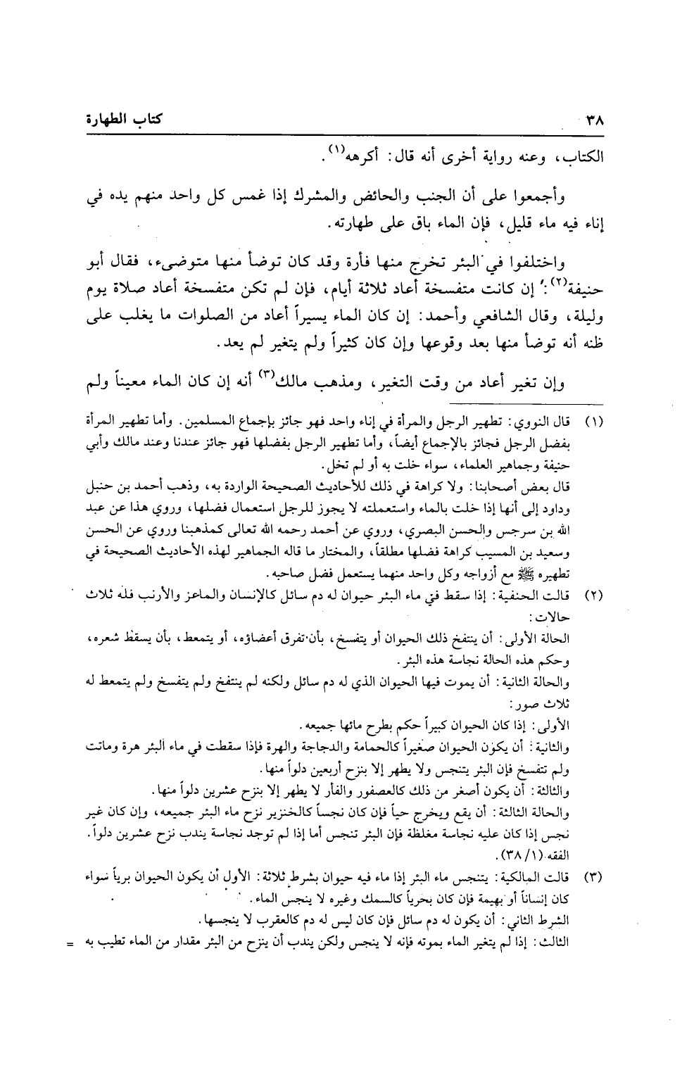 وَاخْتلفُوا فِي الْبِئْر تخرج مِنْهَا فَأْرَة وَقد كَانَ تَوَضَّأ مِنْهَا متوضئ، فَقَالَ أَبُو حنيفَة: إِن كَانَت متفسخة أعَاد ثَلَاثَة أَيَّام، فَإِن لم تكن متفسخة أعَاد صَلَاة يَوْم وَلَيْلَة، وَقَالَ الشَّافِعِي وَأحمد: إِن كَانَ المَاء يَسِيرا أعَاد من الصَّلَوَات مَا يغلب على ظَنّه أَنه تَوَضَّأ مِنْهَا بعد وُقُوعهَا وَإِن كَانَ كثيرا وَلم يتَغَيَّر لم يعد.