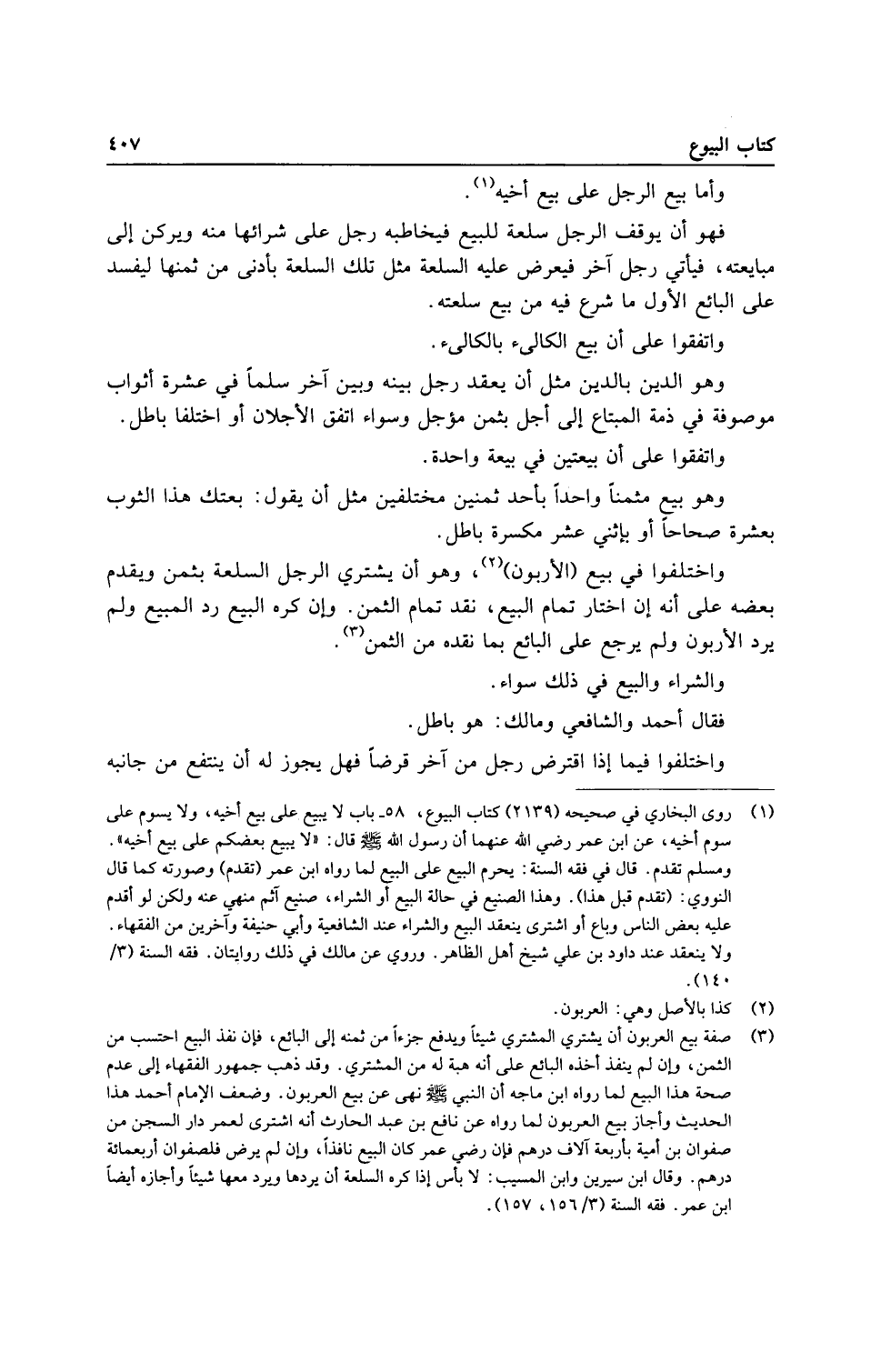 وَاخْتلفُوا فِي بيع (الأربون) ، وَهُوَ أَن يَشْتَرِي الرجل السّلْعَة بِثمن وَيقدم بعضه على أَنه إِن اخْتَار تَمام البيع، نقد تَمام الثّمن، وَإِن كره البيع رد الْمَبِيع وَلم يرد الأربون وَلم يرجع على البَائِع بِمَا نَقده من الثّمن.
