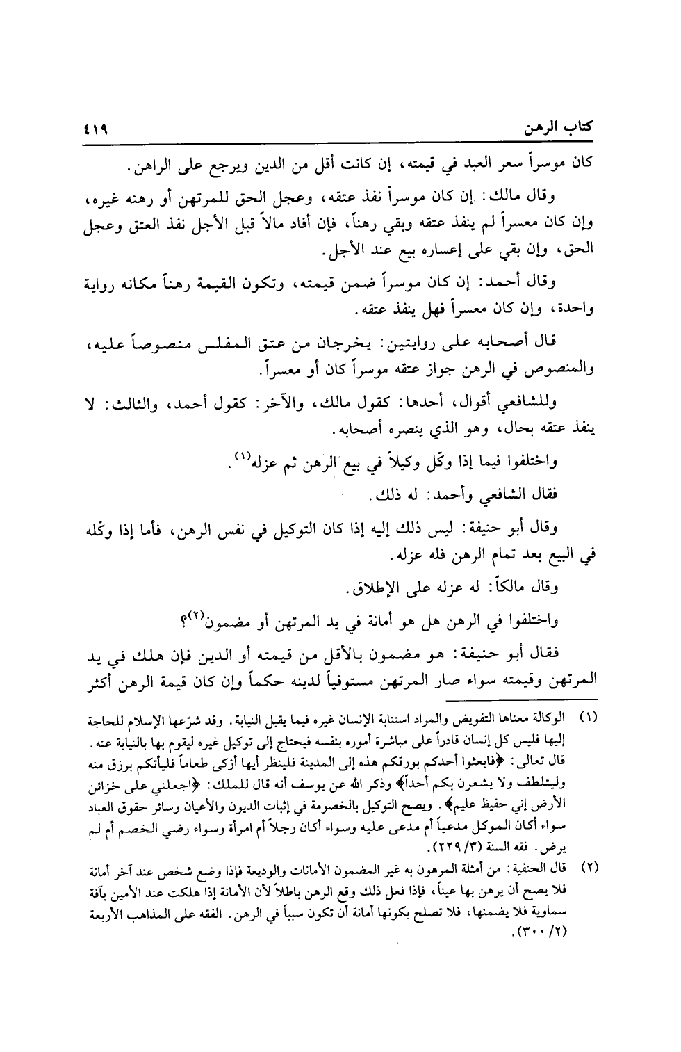 وَاخْتلفُوا فِي الرَّهْن هَل هُوَ أَمَانَة فِي يَد الْمُرْتَهن أَو مَضْمُون؟
