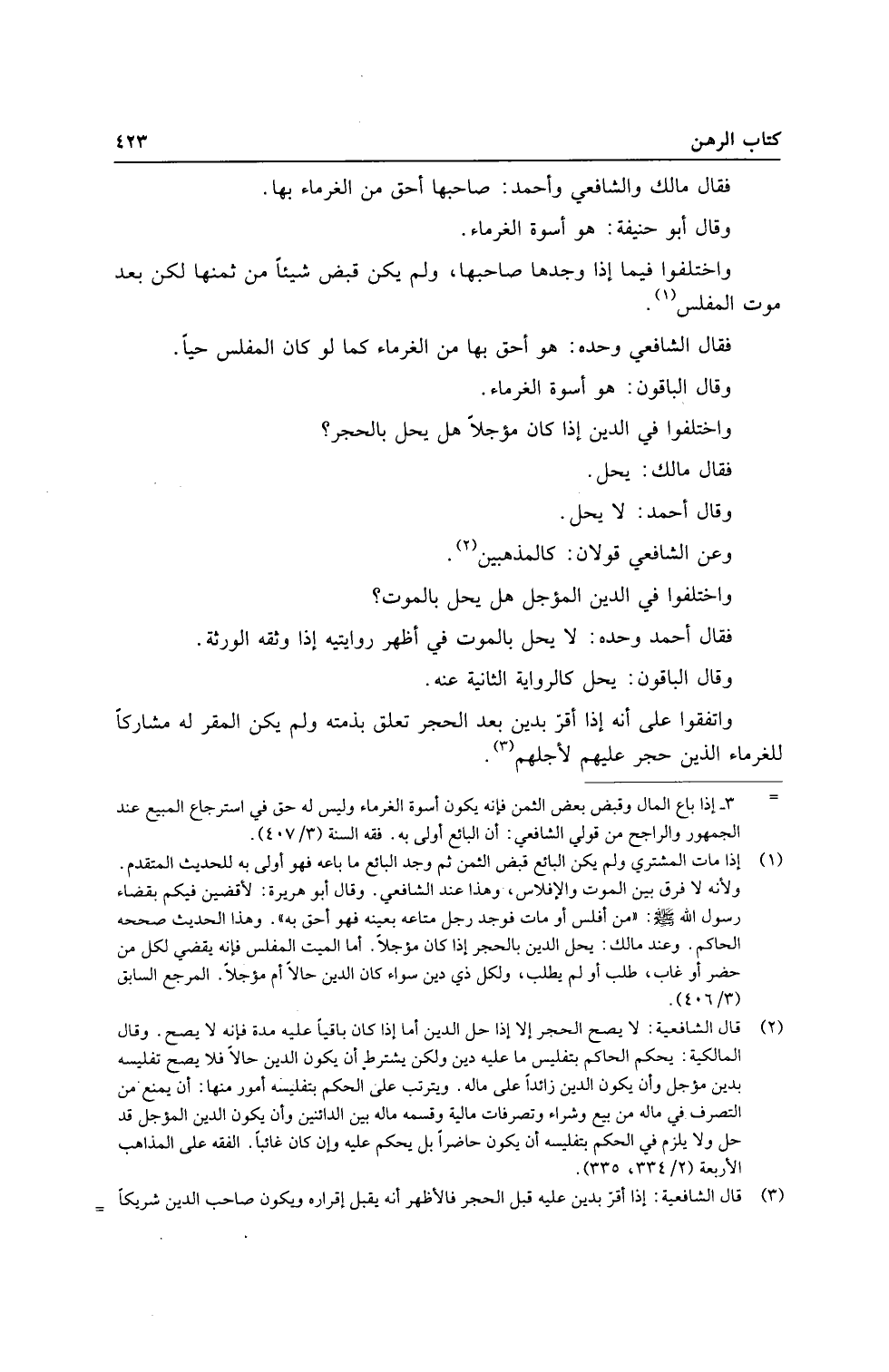 وَاخْتلفُوا فِي الدّين الْمُؤَجل هَل يحل بِالْمَوْتِ؟
