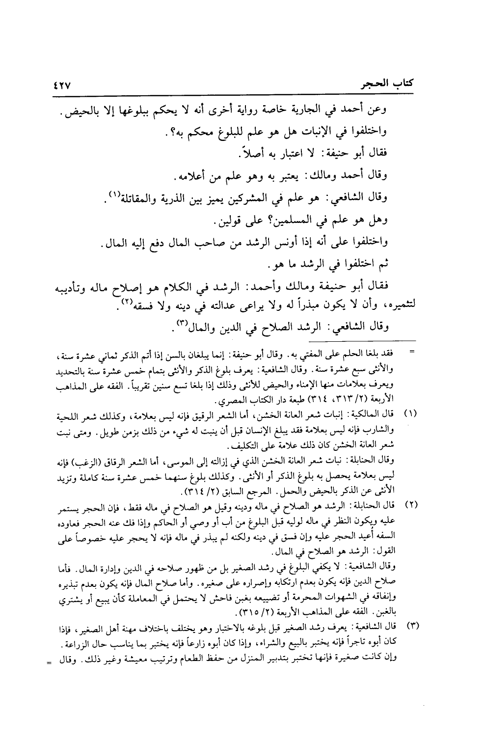 فَقَالَ أَبُو حنيفَة وَمَالك وَأحمد: الرشد فِي الْكَلَام هُوَ إصْلَاح مَاله وتأديبه لتثميره، وَأَن لَا يكون مبذرا لَهُ وَلَا يُرَاعى عَدَالَته فِي دينه وَلَا فسقه.