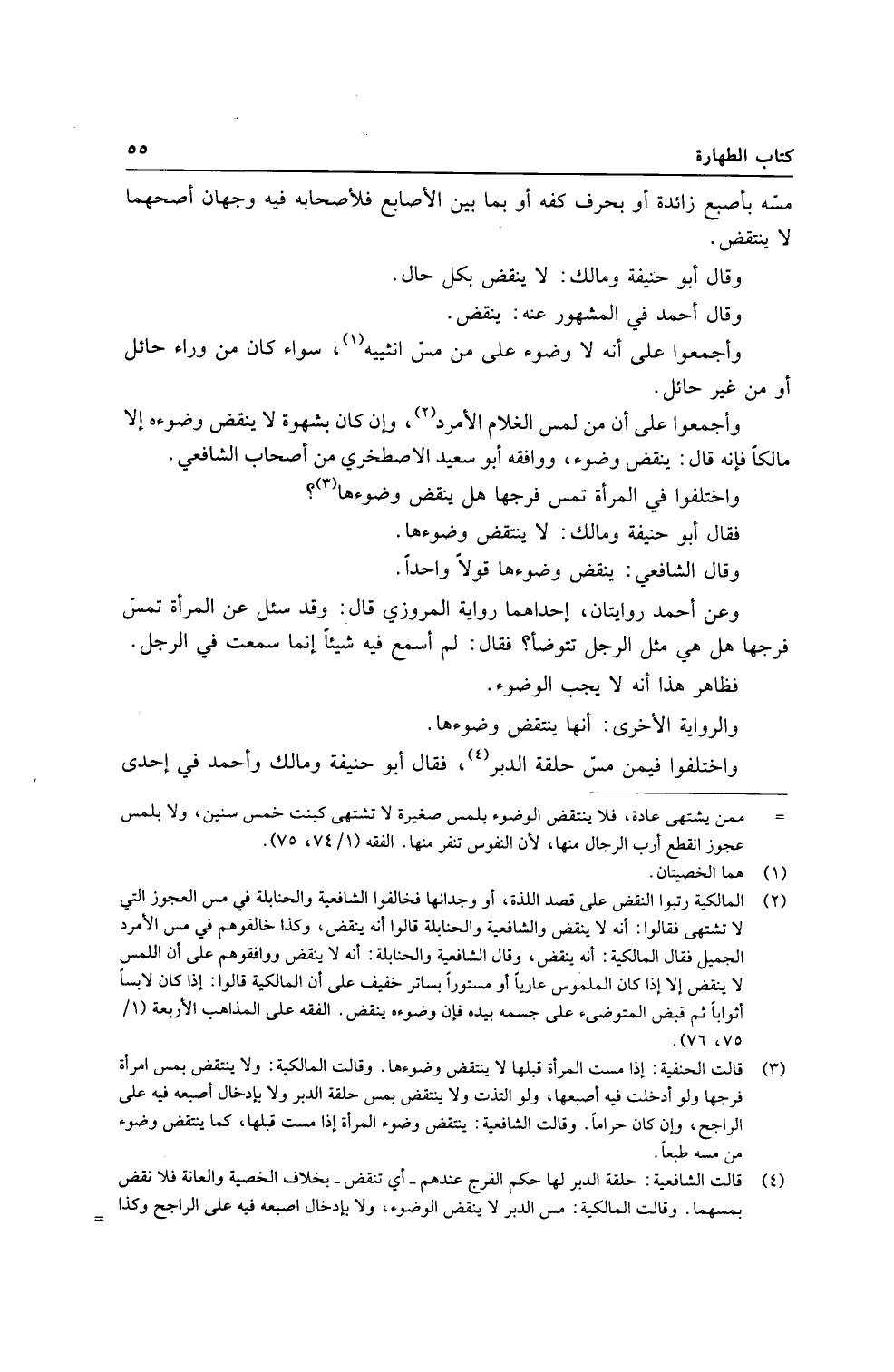 وَأَجْمعُوا على أَن من لمس الْغُلَام الْأَمْرَد، وَإِن كَانَ بِشَهْوَة لَا ينْقض وضوءه إِلَّا مَالِكًا فَإِنَّهُ قَالَ: ينْقض وضوء، وَوَافَقَهُ أَبُو سعيد الاصطخري من أَصْحَاب الشَّافِعِي.