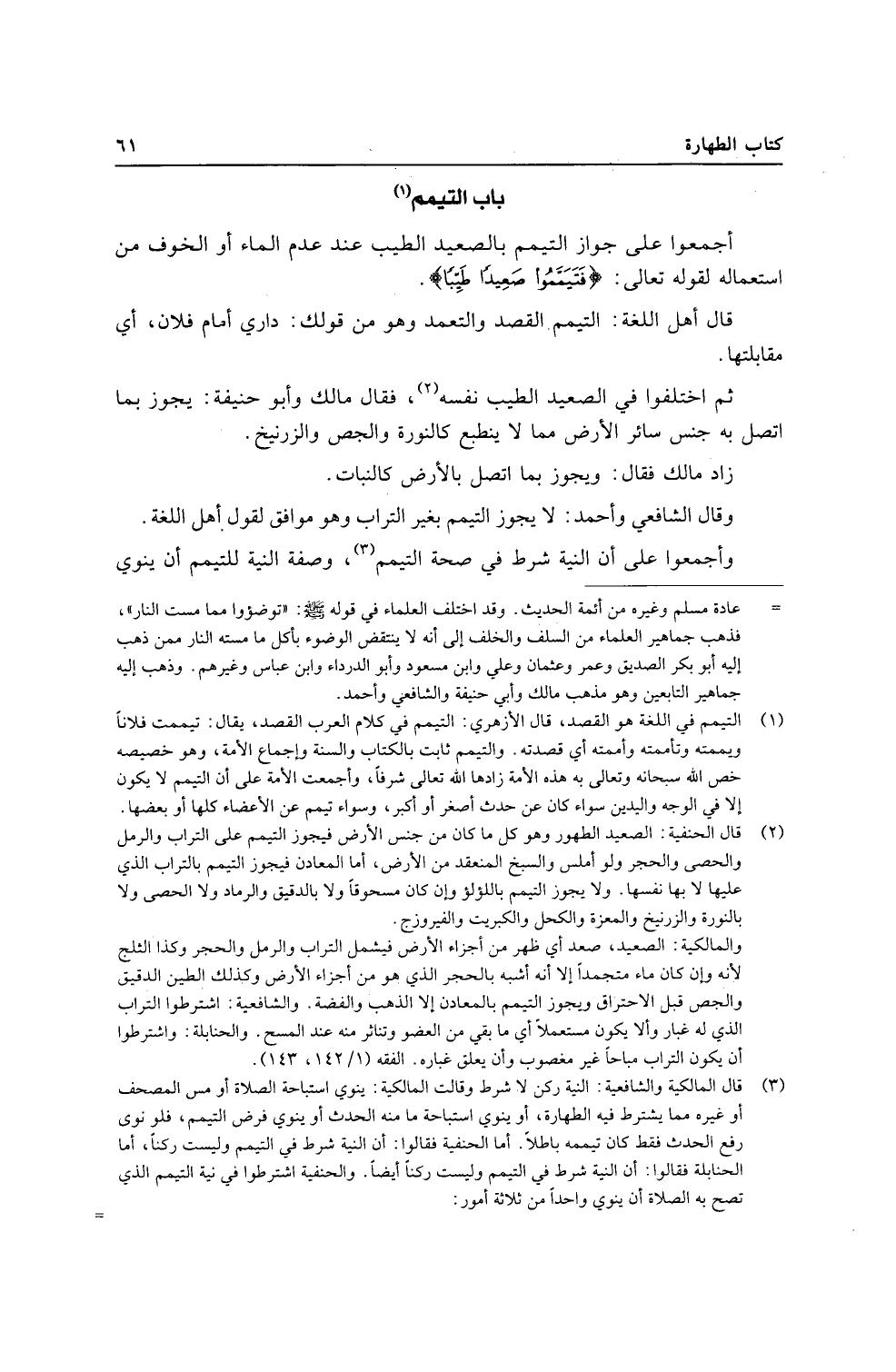 وَأَجْمعُوا على أَن النِّيَّة شَرط فِي صِحَة التَّيَمُّم، وَصفَة النِّيَّة للتيمم أَن يَنْوِي