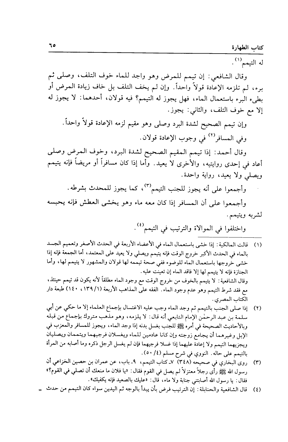 وَقَالَ الشَّافِعِي: إِن تيَمّم للمرض وَهُوَ وَاجِد للْمَاء خوف التّلف، وَصلى ثمَّ برْء /، لم تلْزمهُ الْإِعَادَة قولا وَاحِدًا. وَإِن لم يخف التّلف بل خَافَ زِيَادَة الْمَرَض أَو بطيء الْبُرْء بِاسْتِعْمَال المَاء، فَهَل يجوز لَهُ التَّيَمُّم؟ فِيهِ قَولَانِ، أَحدهمَا: لَا يجوز لَهُ إِلَّا مَعَ خوف التّلف، وَالثَّانِي: يجوز.
