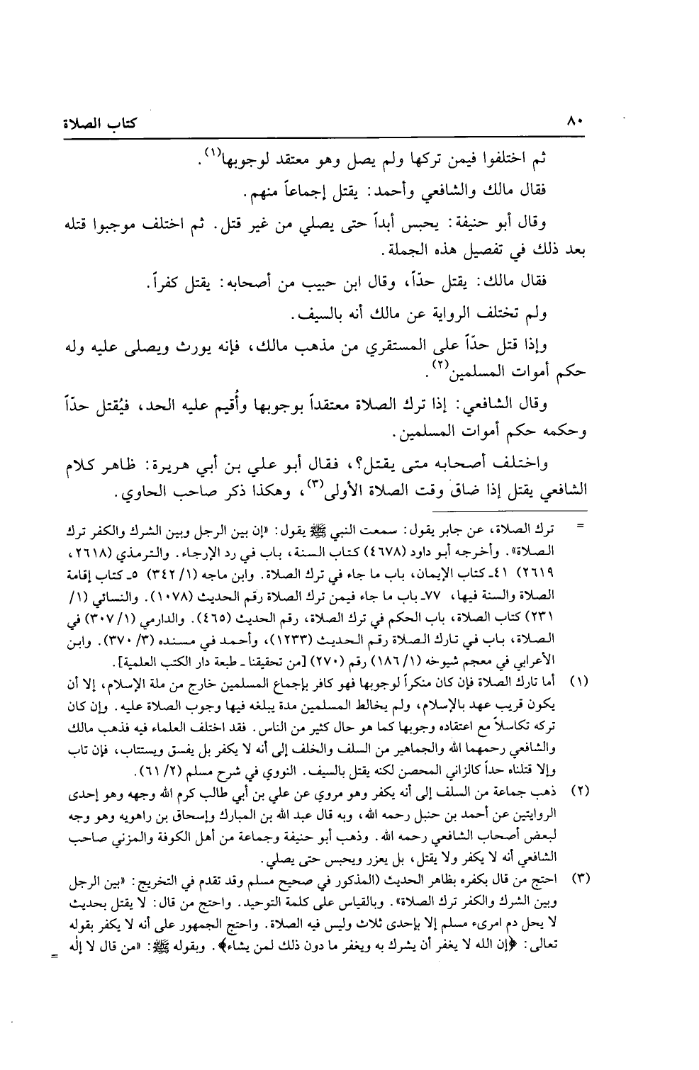 ثمَّ اخْتلفُوا فِيمَن تَركهَا وَلم يصل وَهُوَ مُعْتَقد لوُجُوبهَا.