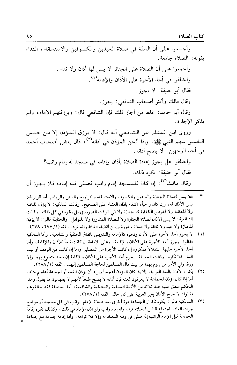 واجمعوا على أَن السّنة فِي صَلَاة الْعِيدَيْنِ والكسوفين وَالِاسْتِسْقَاء، النداء بقوله: الصَّلَاة جَامِعَة.
