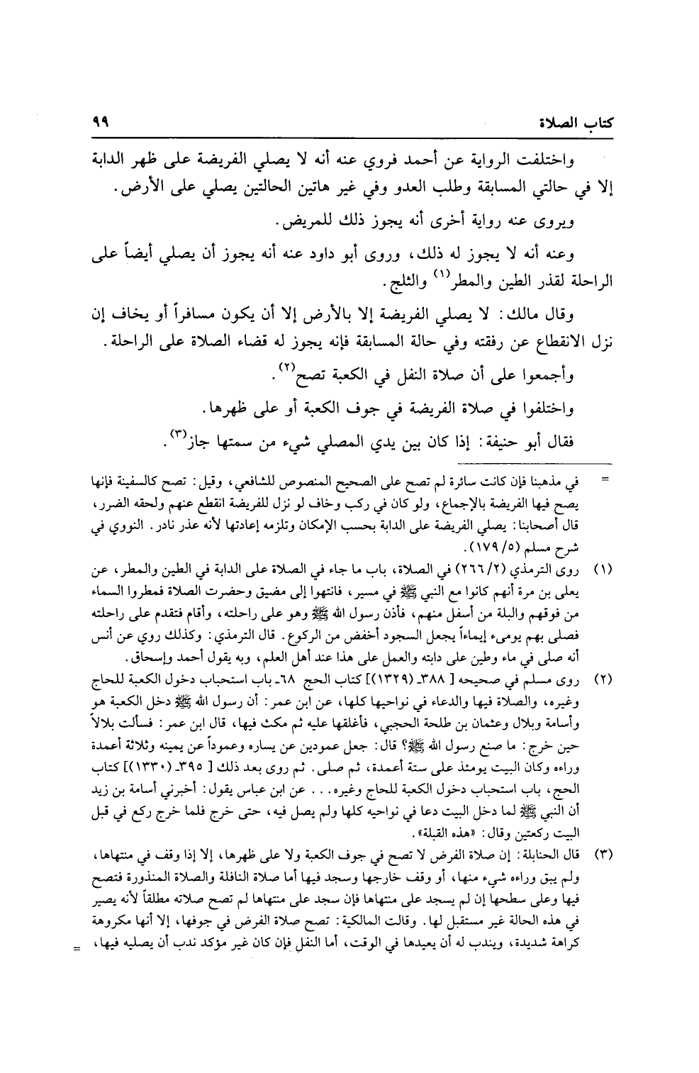 وَاخْتلفت الرِّوَايَة عَن أَحْمد فَروِيَ عَنهُ أَنه لَا يُصَلِّي الْفَرِيضَة على ظهر الدَّابَّة إِلَّا فِي حالتي الْمُسَابقَة وَطلب الْعَدو وَفِي غير هَاتين الْحَالَتَيْنِ يُصَلِّي على الأَرْض.