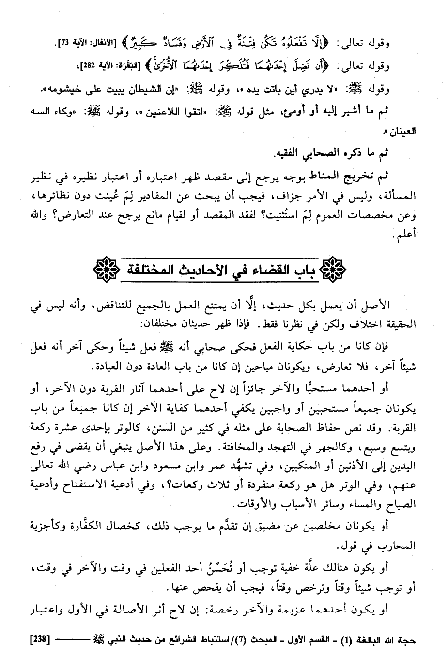 كتاب حجة الله البالغة (اسم الجزء: 1)