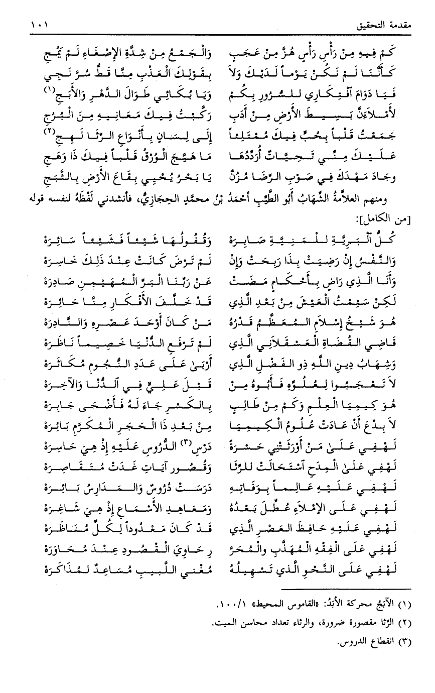 ومنهم العلامة الشهاب أبو الطيب أحمد بن محمد الحجازي، فأنشدني لفظه لنفسه قوله [من الكامل] :
