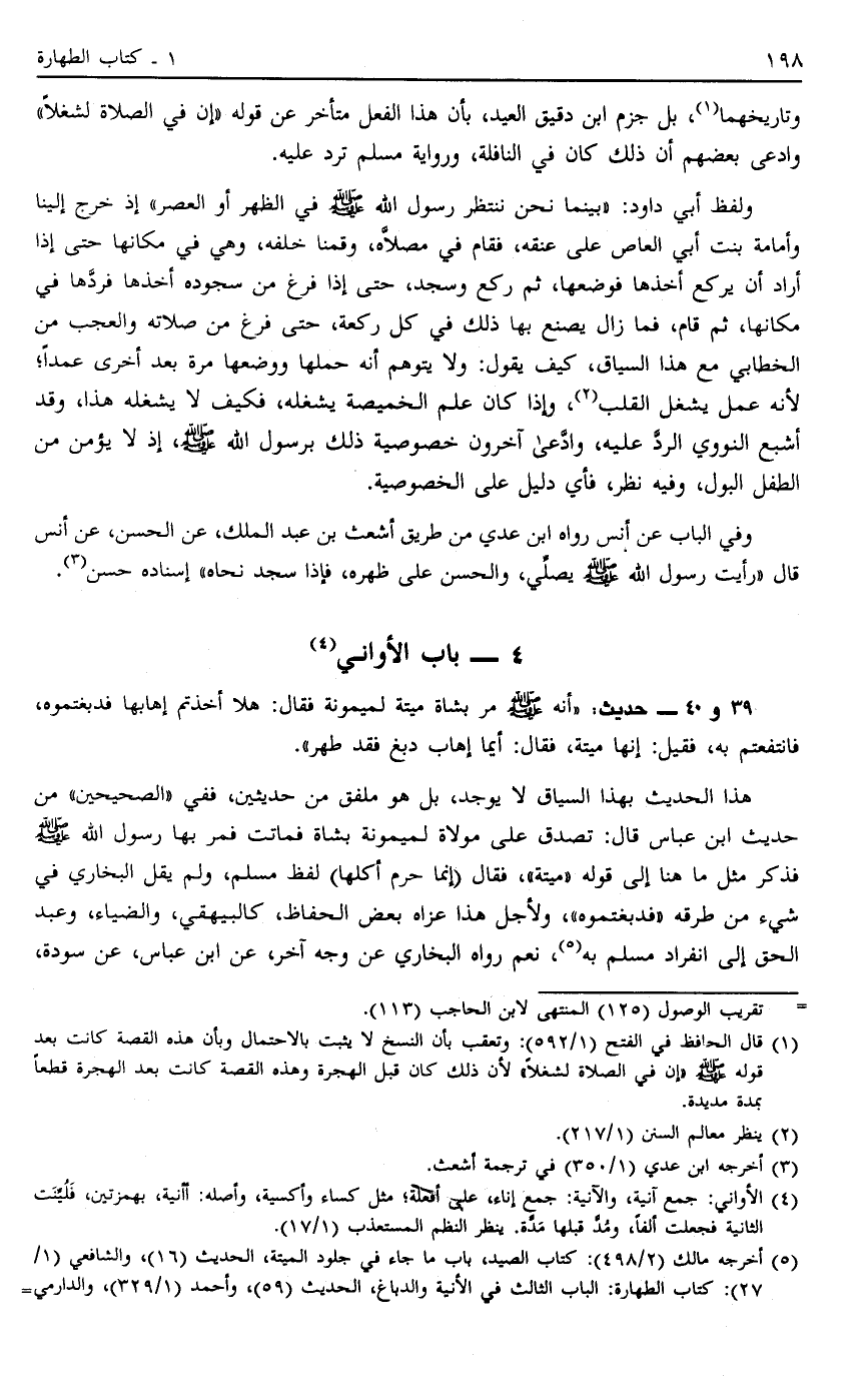 1 قال الحافظ في الفتح "1/592": وتعقب بأن النسخ لا يثبت بالاحتمال وبأن هذه القصة كانت بعد قوله صلي الله عليه وسلم: "إن في الصلاة لشغلاً" لأن ذلك كان قبل الهجرة وهذه القصة كانت بمد الهجرة قطعاً بمدة مديدة.