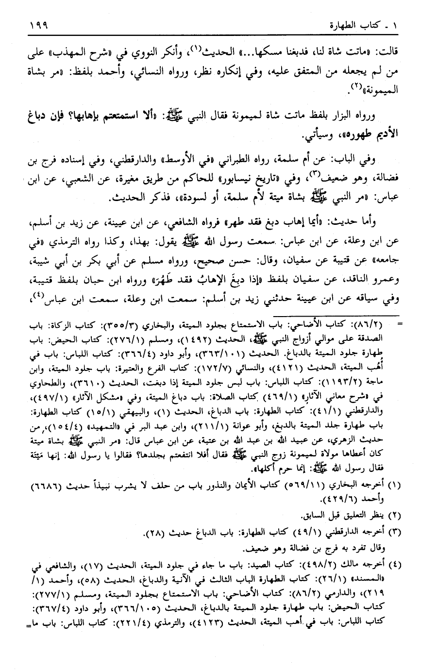 4 أخرجه مالك "2/498": كتاب الصيد: باب ما جاء في جلود الميتة، الحديث "17"، والشافعي في "المسند" "1/26": كتاب الطهارة الباب الثالث في الآنية والدباغ، الحديث "58"، وأحمد "1/219"، والدارمي "2/86": كتاب الإيضاحي: باب الاستمتاع لجلود الميتة، ومسلم "1/288": كتاب الحيض: باب طهارة جلود الميتة بالدباغ، الحدث "105/366"، وأبو داود "4/367": كتاب اللباس: باب في أهب الميتة، الحديث "4123"، والترمذي "4/221": كتاب اللباس: باب ما.....=