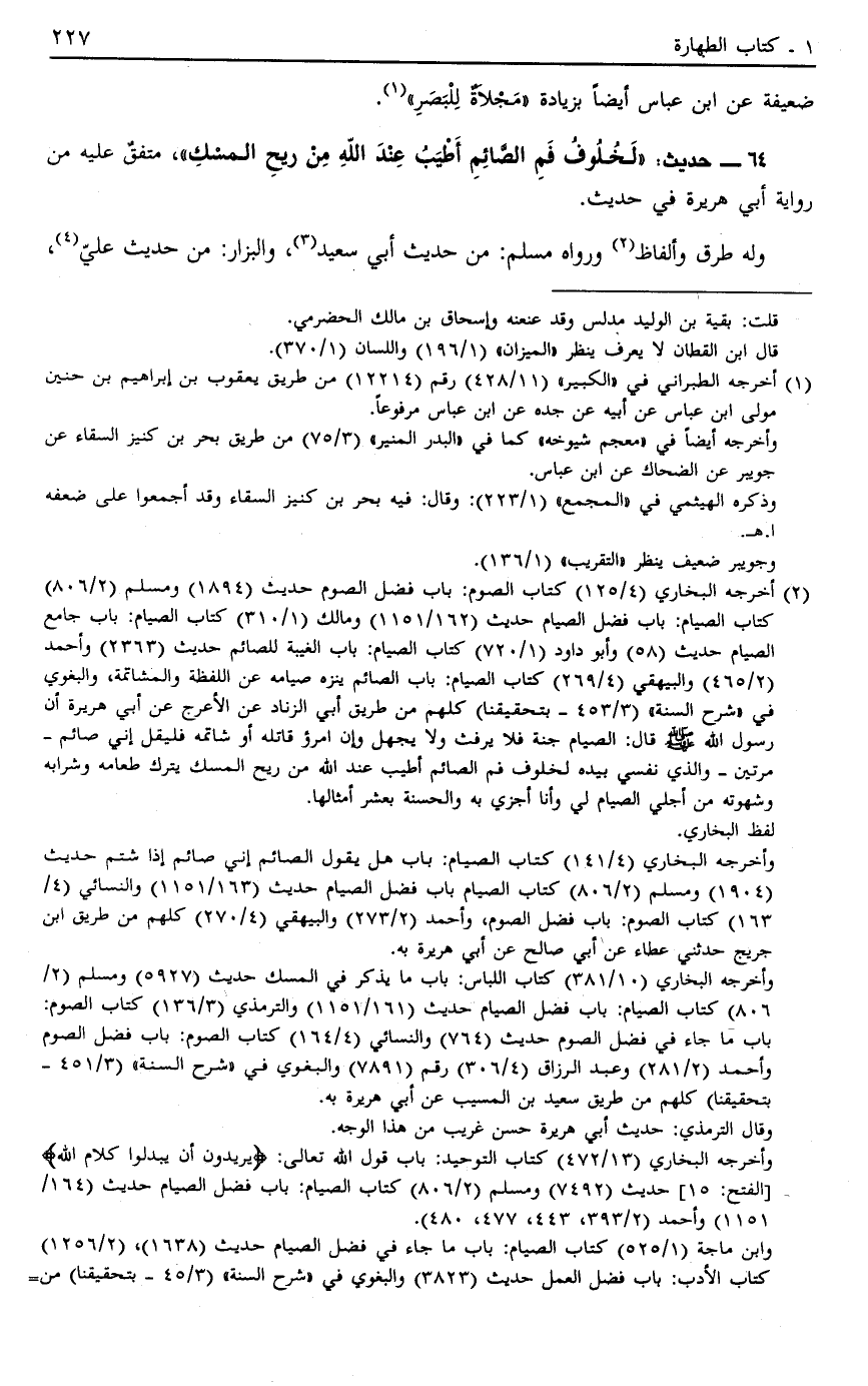 64 - حَدِيثُ "لَخُلُوفِ فَمِ الصَّائِمِ أَطْيَبُ عِنْدَ اللَّهِ مِنْ رِيحِ الْمِسْكِ" مُتَّفَقٌ عَلَيْهِ مِنْ رِوَايَةِ أَبِي هُرَيْرَةَ فِي حَدِيثٍ.