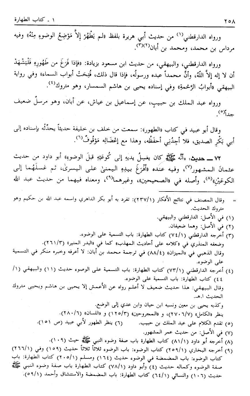 72 - حَدِيثُ أَنَّهُ صَلَّى اللَّهُ عَلَيْهِ وَسَلَّمَ كَانَ يَغْسِلُ يَدَيْهِ إلَى كُوعَيْهِ قَبْلَ الْوُضُوءِ أَبُو دَاوُد فِي حَدِيثِ عُثْمَانَ الْمَشْهُورِ7 وَفِيهِ عِنْدَهُ أَفْرَغَ بِيَدِهِ الْيُمْنَى عَلَى الْيُسْرَى ثُمَّ غَسَلَهُمَا إلَى الْكُوعَيْنِ8 وَأَصْلُهُ فِي الصَّحِيحَيْنِ وَغَيْرِهِمَا9 وَمَعْنَاهُ فِيهِمَا مِنْ حَدِيثِ عَبْدِ اللَّهِ