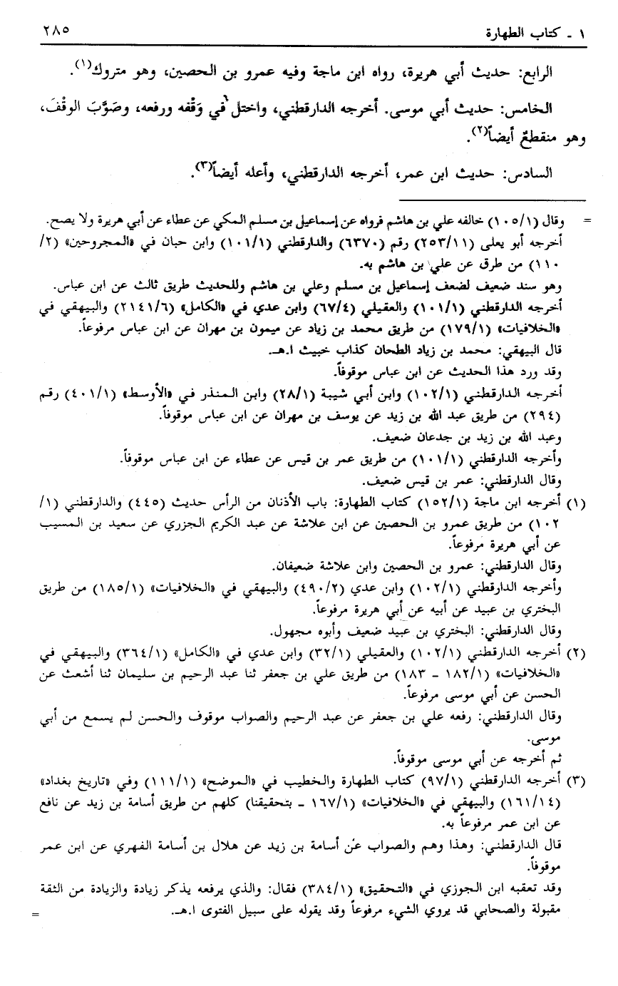 3 أخرجه الدارقطني "1/97" كتاب الطهارة والخطيب في "الموضح" "1/111" وفي "تاريخ بغداد"، "14/161" والبيهقي في "الخلافيات" "1/167- بتحقيقنا" كلهم من طريق أسامة بن زيد عن نافع عن ابن عمر مرفوعاً به.