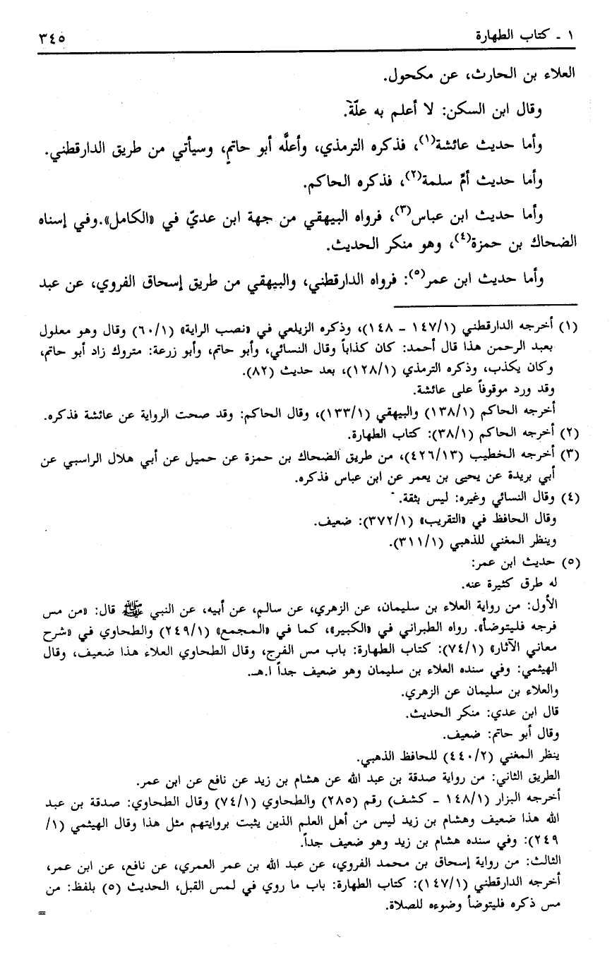 1 أخرجه الدارقطني "1/147- 148"، وذكره الزيلعي في "نصب الراية " "1/60" وقال وهو معلول بعبد الرحمن هذا قال أحمد: كان كذاباً وقال النسائي، وأبو حاتم، وأبو زرعة: متروك زاد أبو حاتم، وكان يكذب، وذكره الترمذي "1/128"، بعد حديث "82".