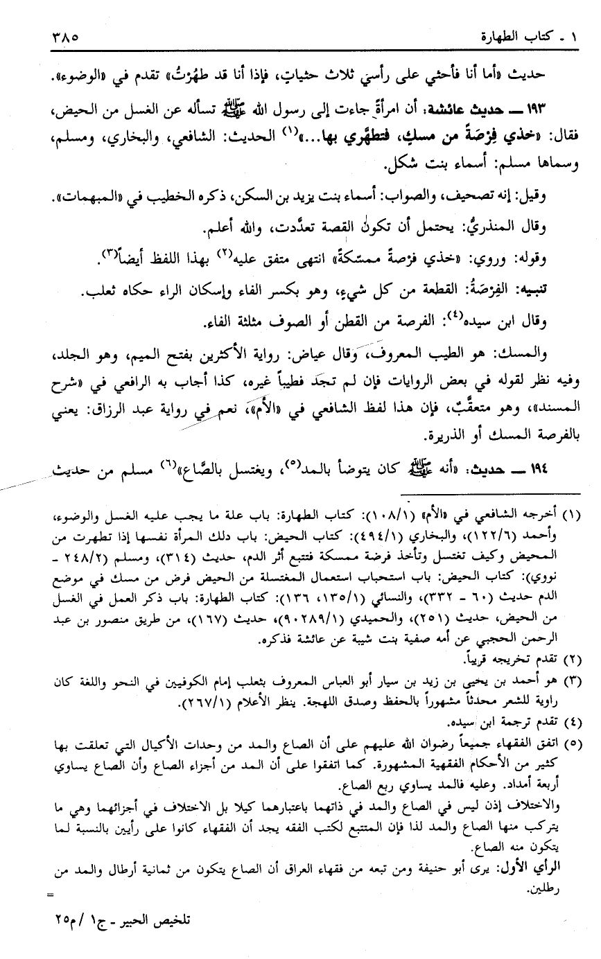 193 - حَدِيثُ عَائِشَةَ أَنَّ امْرَأَةً جَاءَتْ إلَى رَسُولِ اللَّهِ صَلَّى اللَّهُ عَلَيْهِ وَسَلَّمَ تَسْأَلُهُ عَنْ الْغُسْلِ مِنْ الْحَيْضِ فَقَالَ: "خُذِي فِرْصَةً مِنْ مِسْكٍ فَتَطَهَّرِي بِهَا" 1 الْحَدِيثُ الشَّافِعِيُّ وَالْبُخَارِيُّ وَمُسْلِمٌ وَسَمَّاهَا مُسْلِمٌ أَسْمَاءَ بِنْتَ شَكَلٍ