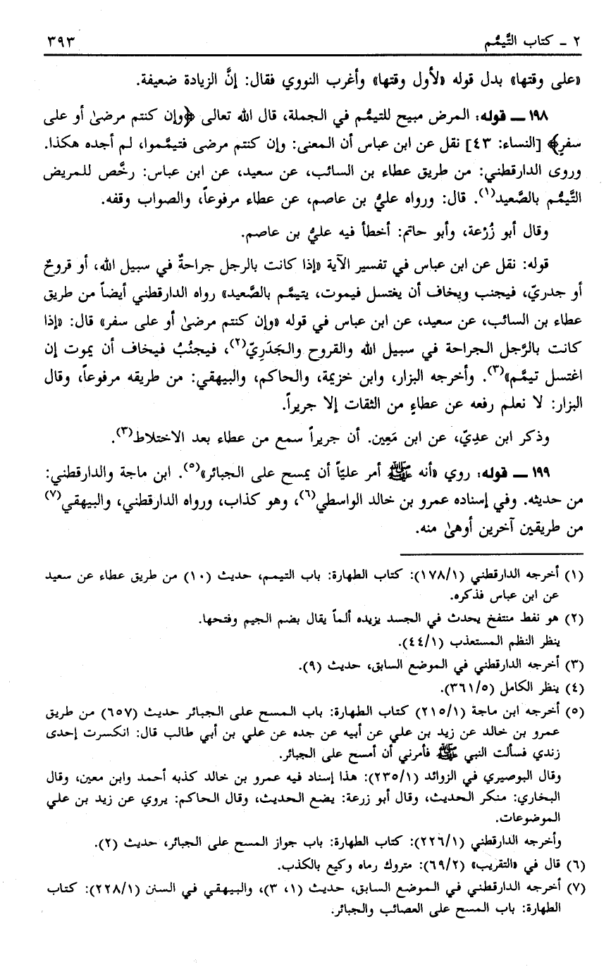 7 أخرجه الدارقطني في الموضع السابق، حديث "1، 3"، والبيهقي في السنن "1/228": كتاب الطهارة: باب المسح على العصائب والجبائر.