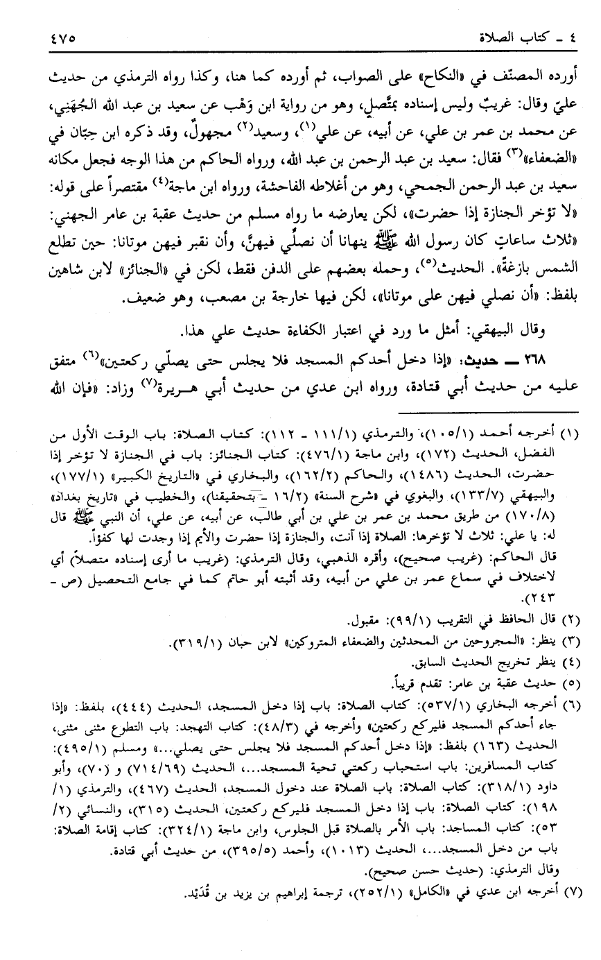 268 - حَدِيثٌ: "إذَا دَخَلَ أَحَدُكُمْ الْمَسْجِدَ فَلَا يَجْلِسْ حَتَّى يُصَلِّيَ رَكْعَتَيْنِ" 6 مُتَّفَقٌ عَلَيْهِ مِنْ حَدِيثِ أَبِي قَتَادَةَ وَرَوَاهُ ابْنُ عَدِيٍّ مِنْ حَدِيثِ أَبِي هُرَيْرَةَ7 وَزَادَ فَإِنَّ اللَّهَ