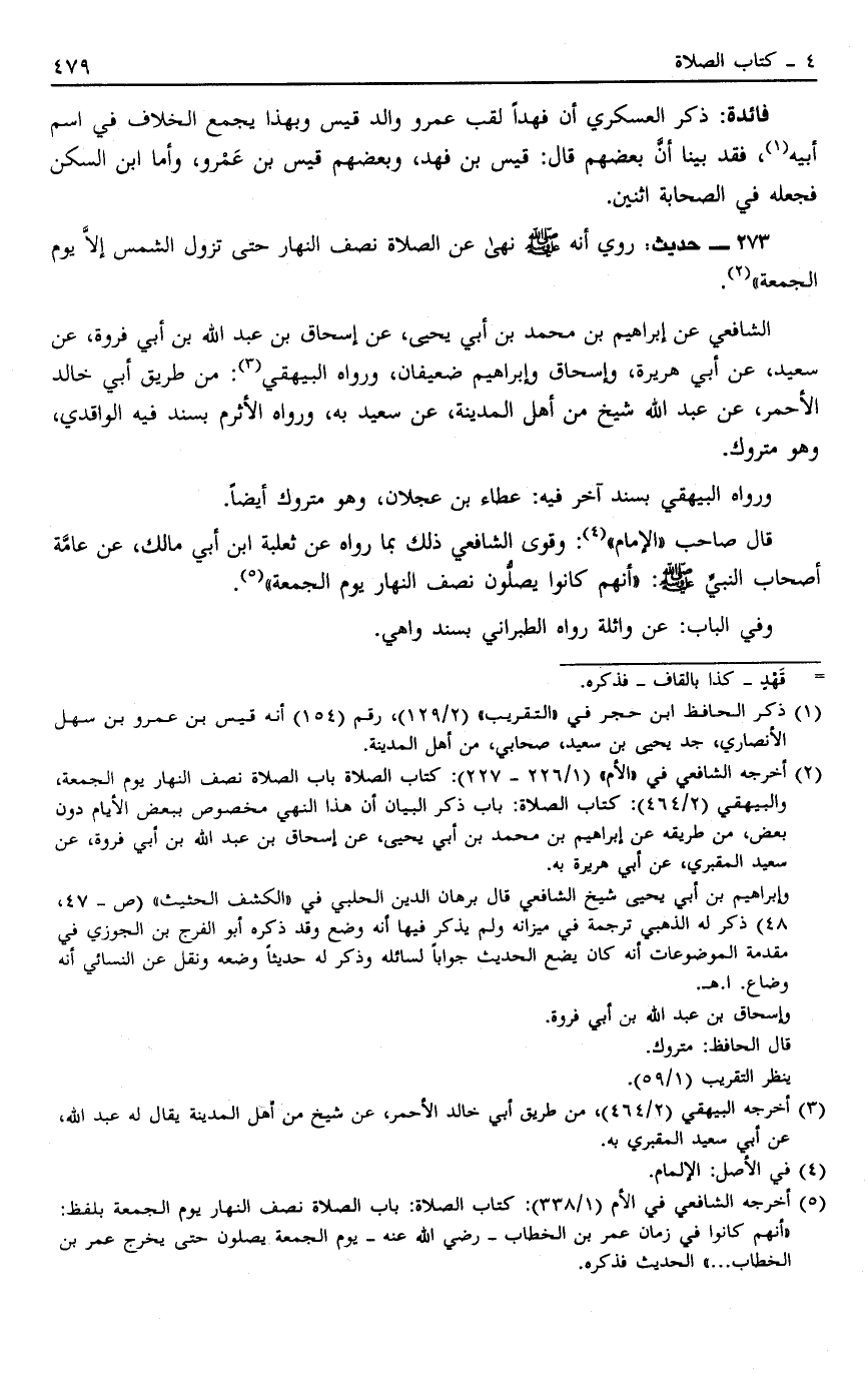 2 أخرجه الشافعي في " الأم" "1/226- 227": كتاب الصلاة باب الصلاة نصف النهار يوم الجمعة، والبيهقي "2/464": كتاب الصلاة: باب ذكر البيان أن هذا النهي مخصوص ببعض الأيام دون بعض، من طريقه عن إبراهيم بن محمد بن أبي يحيى، عن إسحاق بن عبد الله بن أبي فروة، عن سعيد المقبري، عن أبي هريرة به.