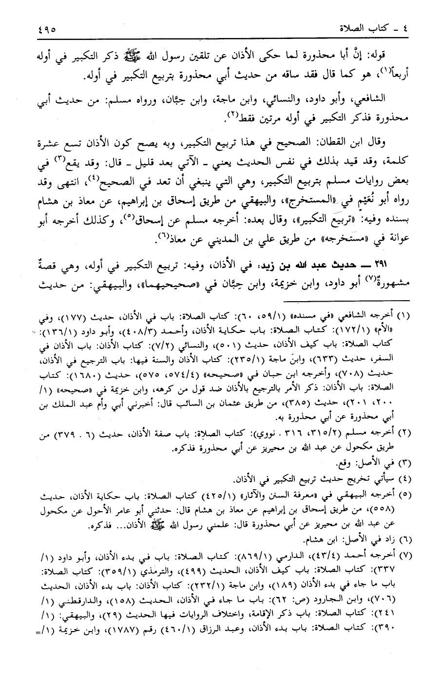4 سيأتي تخريج حديث تربيع التكبير في الأذان.