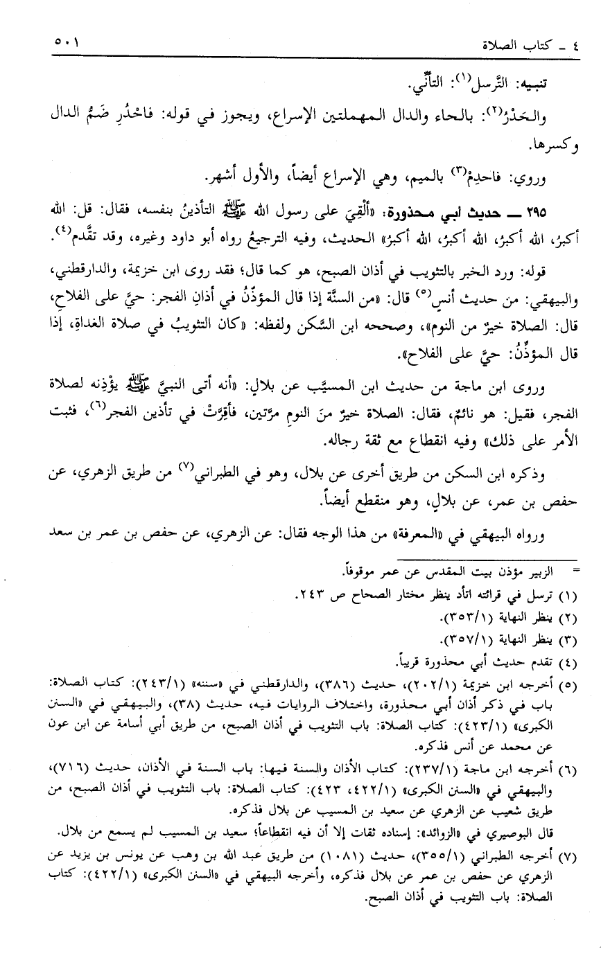 295 - حَدِيثُ أَبِي مَحْذُورَةَ: أَلْقَى عَلَيَّ رَسُولُ اللَّهِ صَلَّى اللَّهُ عَلَيْهِ وَسَلَّمَ التَّأْذِينَ بِنَفْسِهِ فَقَالَ: "قُلْ اللَّهُ أَكْبَرُ اللَّهُ أَكْبَرُ اللَّهُ أَكْبَرُ اللَّهُ أَكْبَرُ" الْحَدِيثُ وَفِيهِ التَّرْجِيعُ 1 رَوَاهُ أَبُو دَاوُد وَغَيْرُهُ وَقَدْ تَقَدَّمَ4
