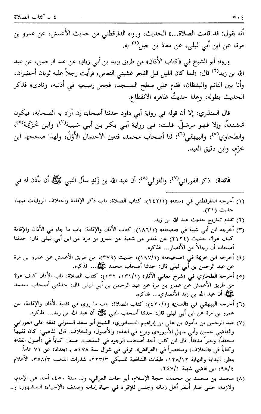 6 أخرجه البيهقي في " السنن " "1/420": كتاب الصلاة: باب ما روي في تثنية الأذان والإقامة، عن عمرو بن مرة عن ابن أبي ليلى قال: حدثنا أصحاب النبي صَلَّى اللَّهُ عَلَيْهِ وَسَلَّمَ أن عبد الله بن زيد ... فذكره.