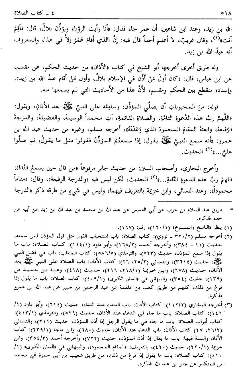 حديث "3614" والنسائي "2/26,25": كتاب الأذان: باب الصلاة على النبي صَلَّى اللَّهُ عَلَيْهِ وَسَلَّمَ بعد الأذان، حديث "678"، وابن خزيمة "1/218، 9 1 2"، حديث "8 1 4"، وعبد بن حميد ص "139"، حديث "354"، والبيهقي في " السنن الكبرى" "1/409": كتاب الصلاة: باب ما يقول إذا فرخ من ذلك، كلهم من طريق كعب بن علقمة عن عبد الرحمن بن جبير عن عبد الله بن عمرو فذكره.